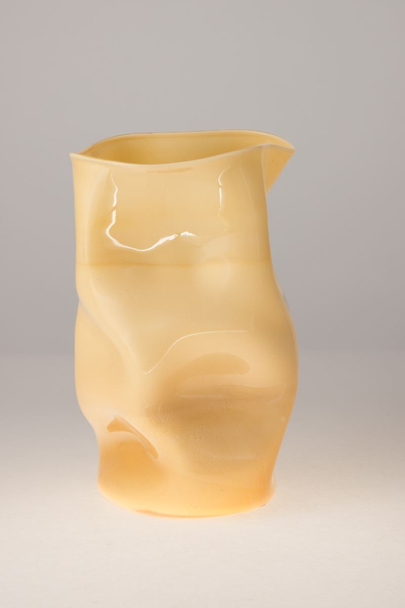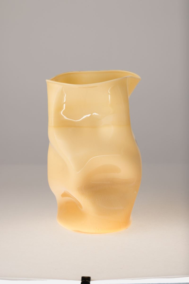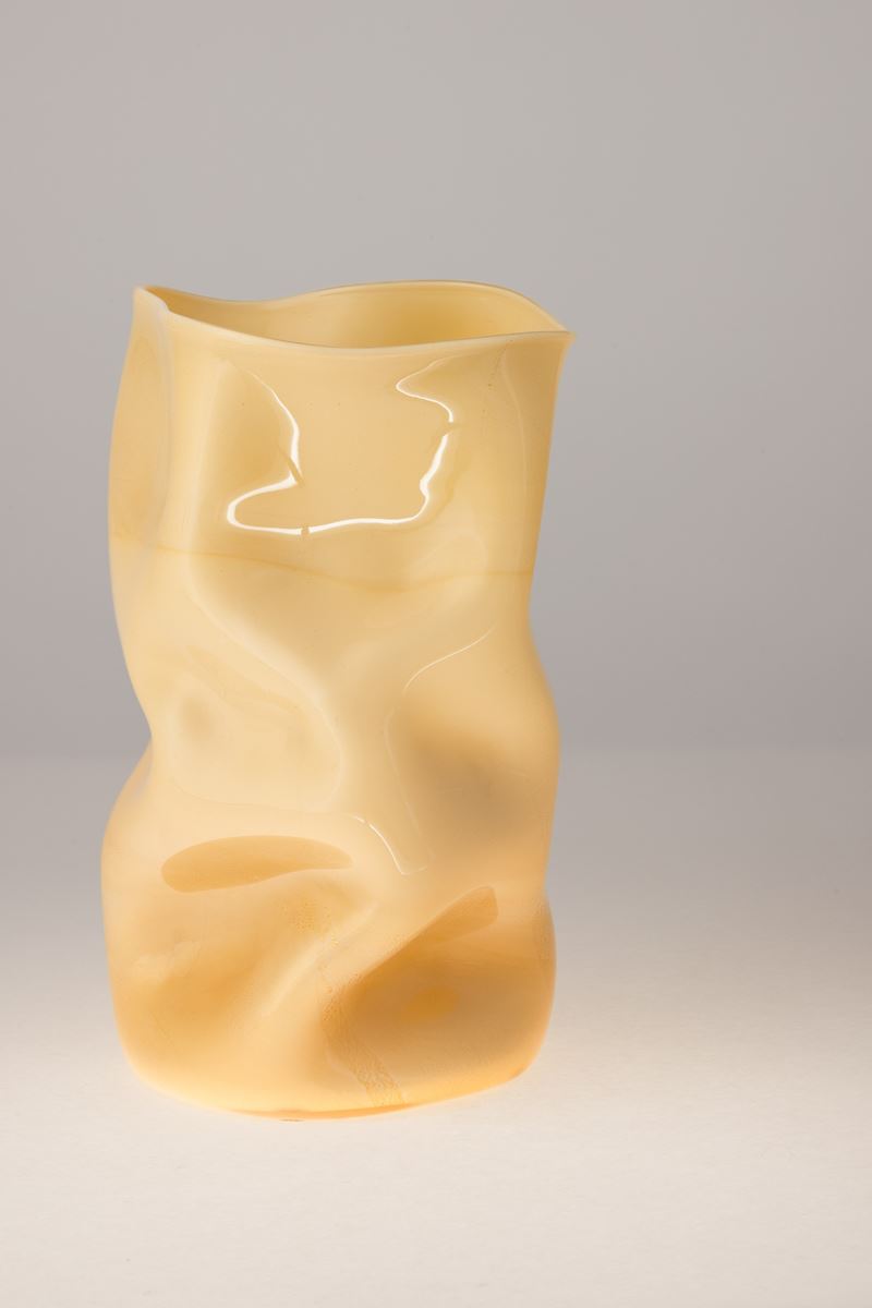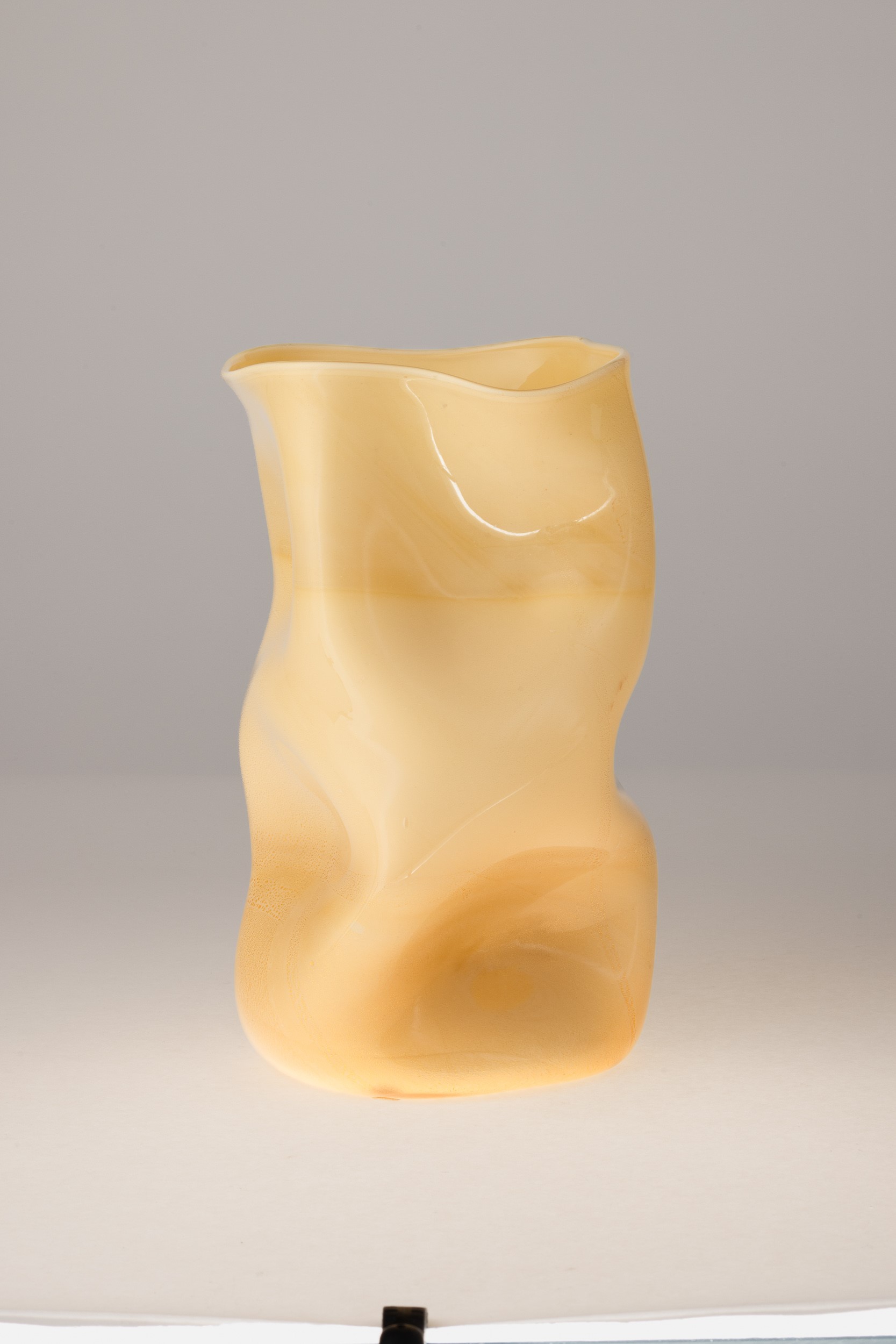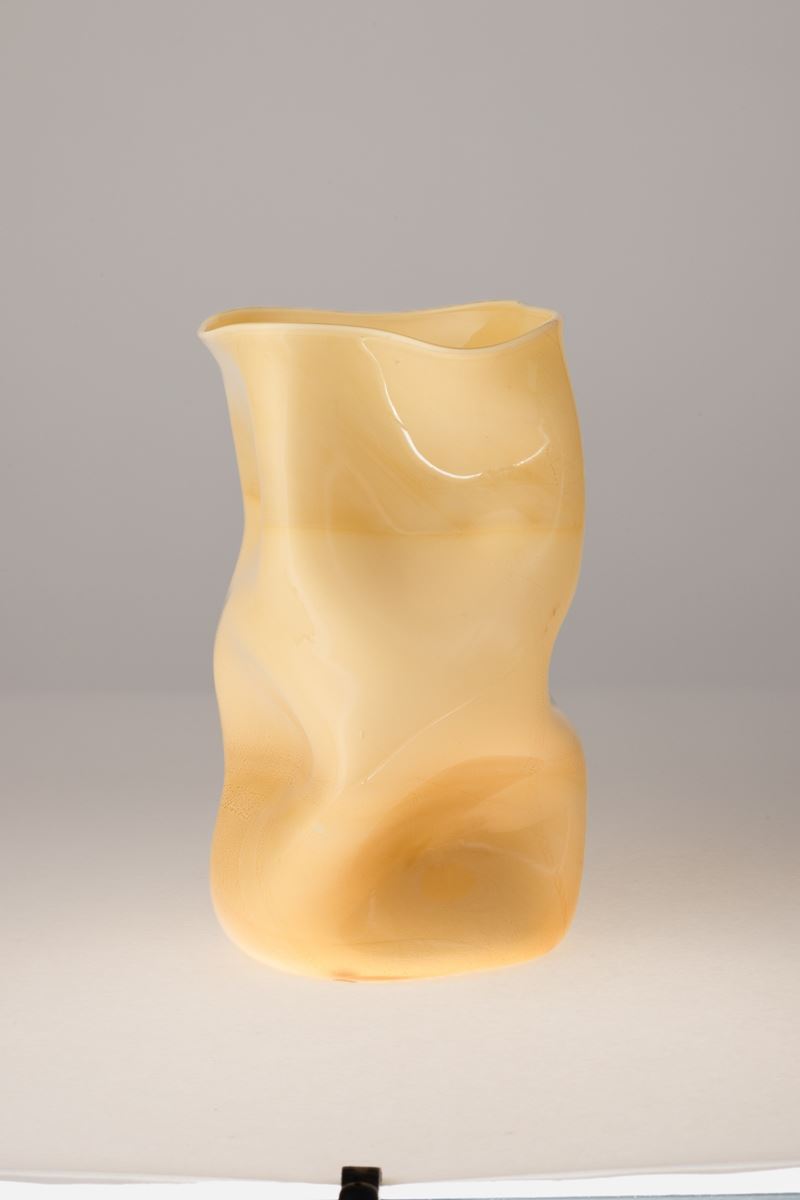 An ivory glass "Cartoccio" vase with gold leaf details. Old label