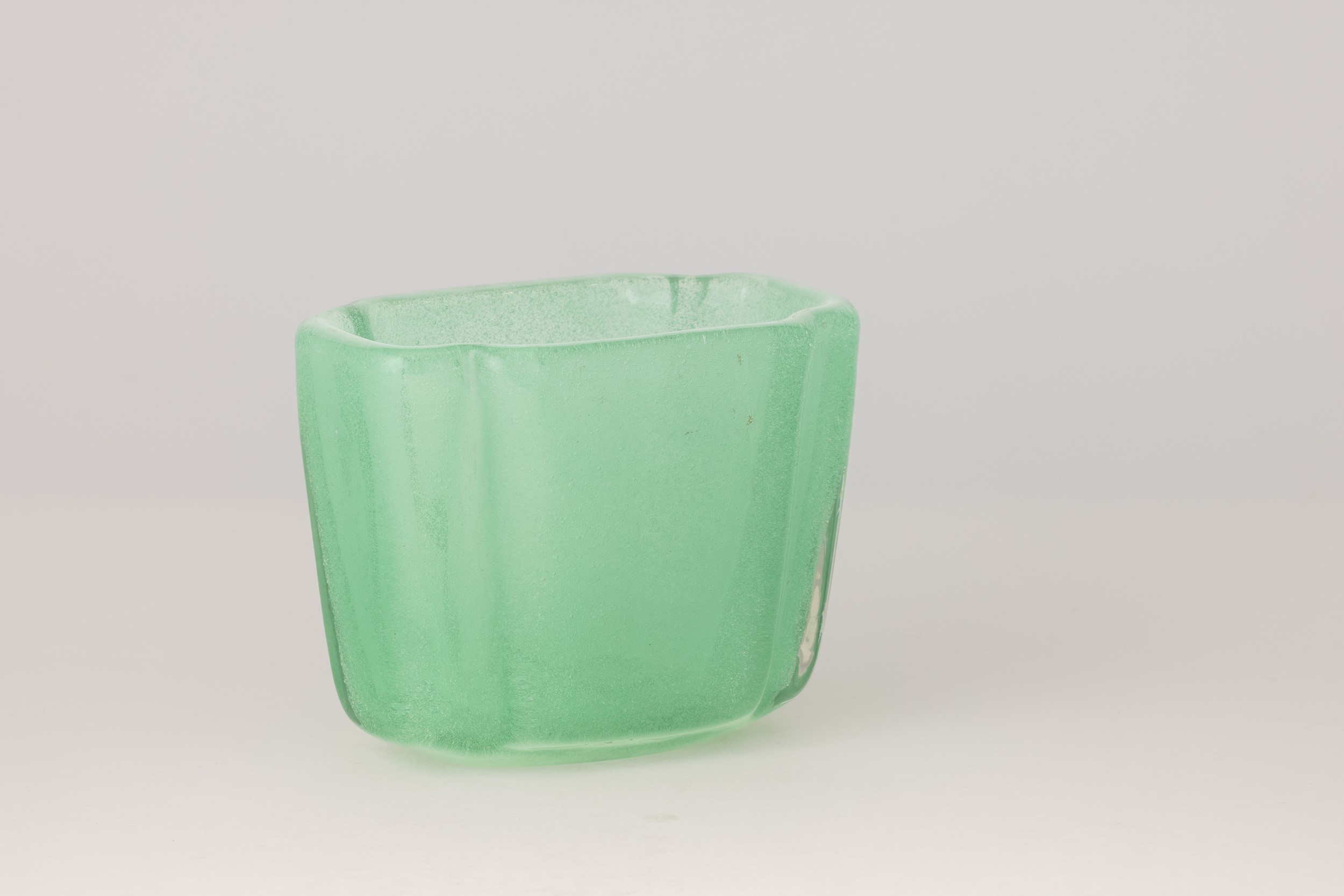 A rare sommerso glass vase from the A Bollicine series. Acid-etched signature Venini Murano Made in Italy