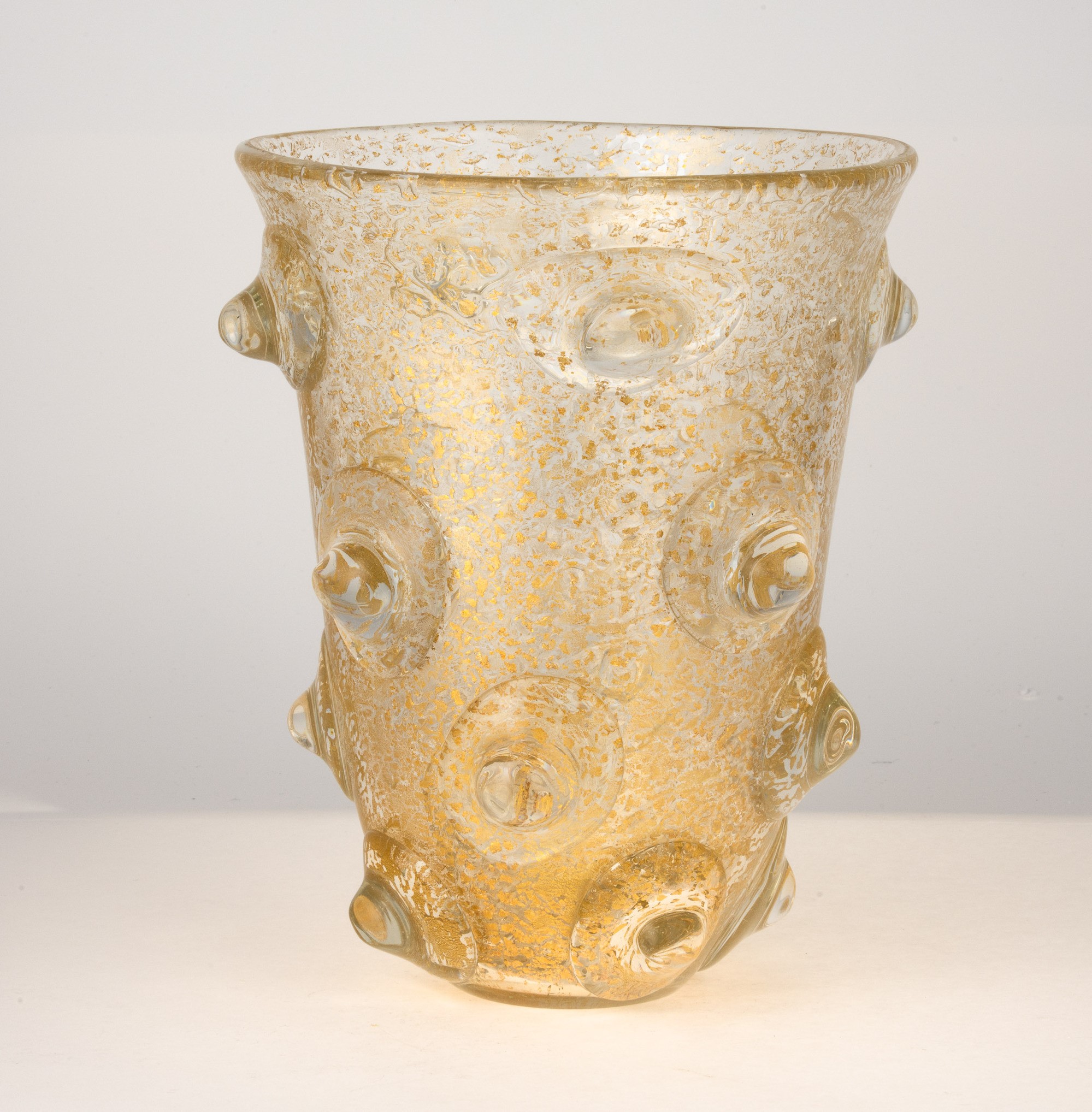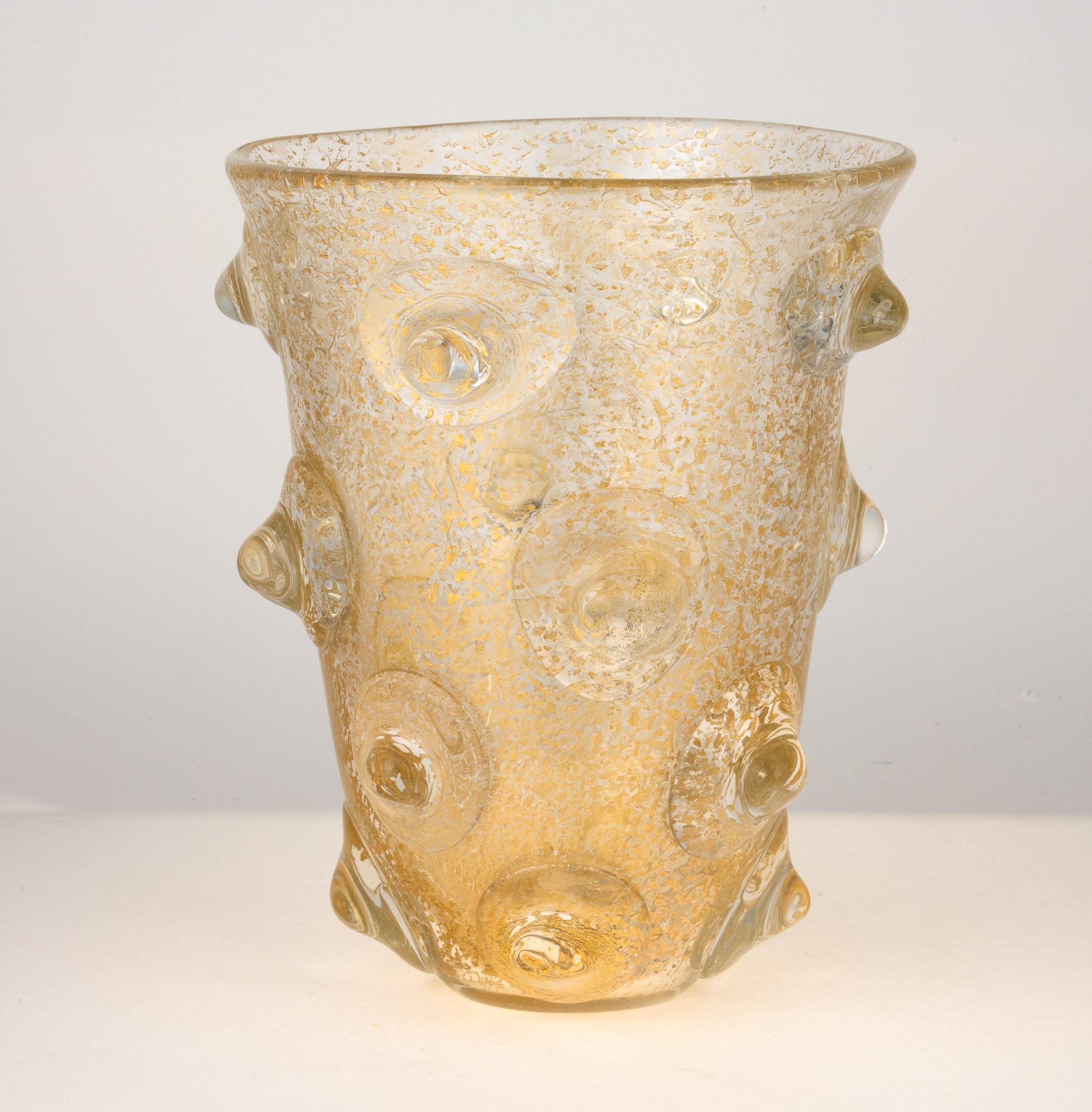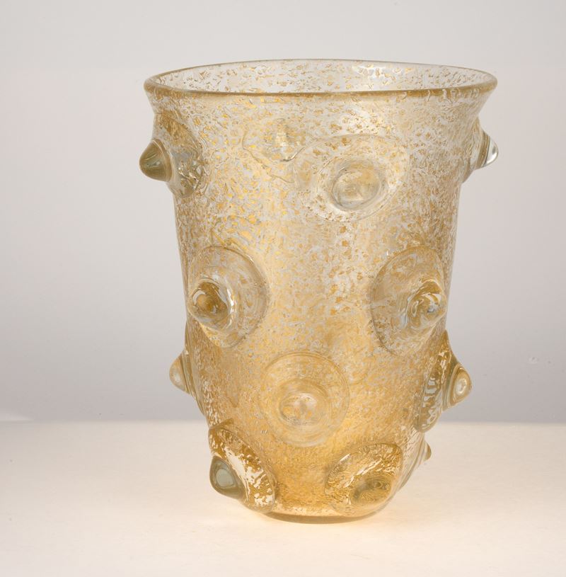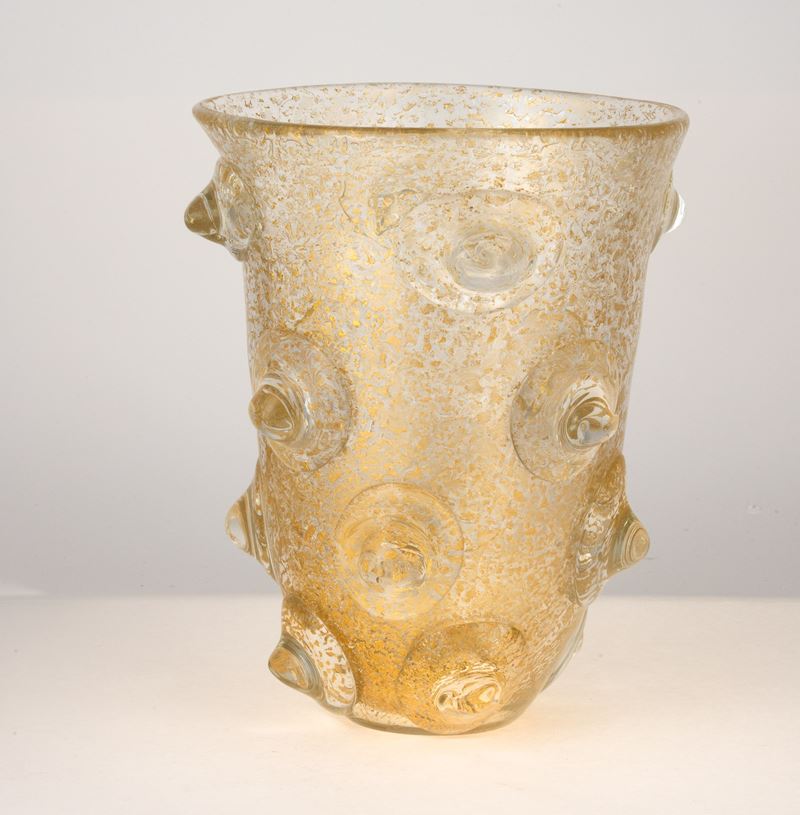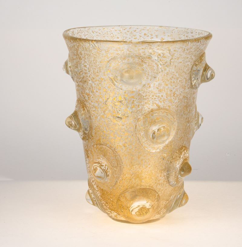 A heavy blown glass vase from the A Mugnoni series with a gold leaf decor