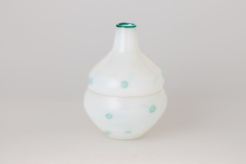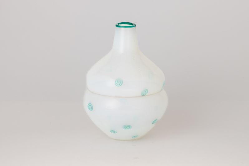 A blown glass vase with a murrine decor