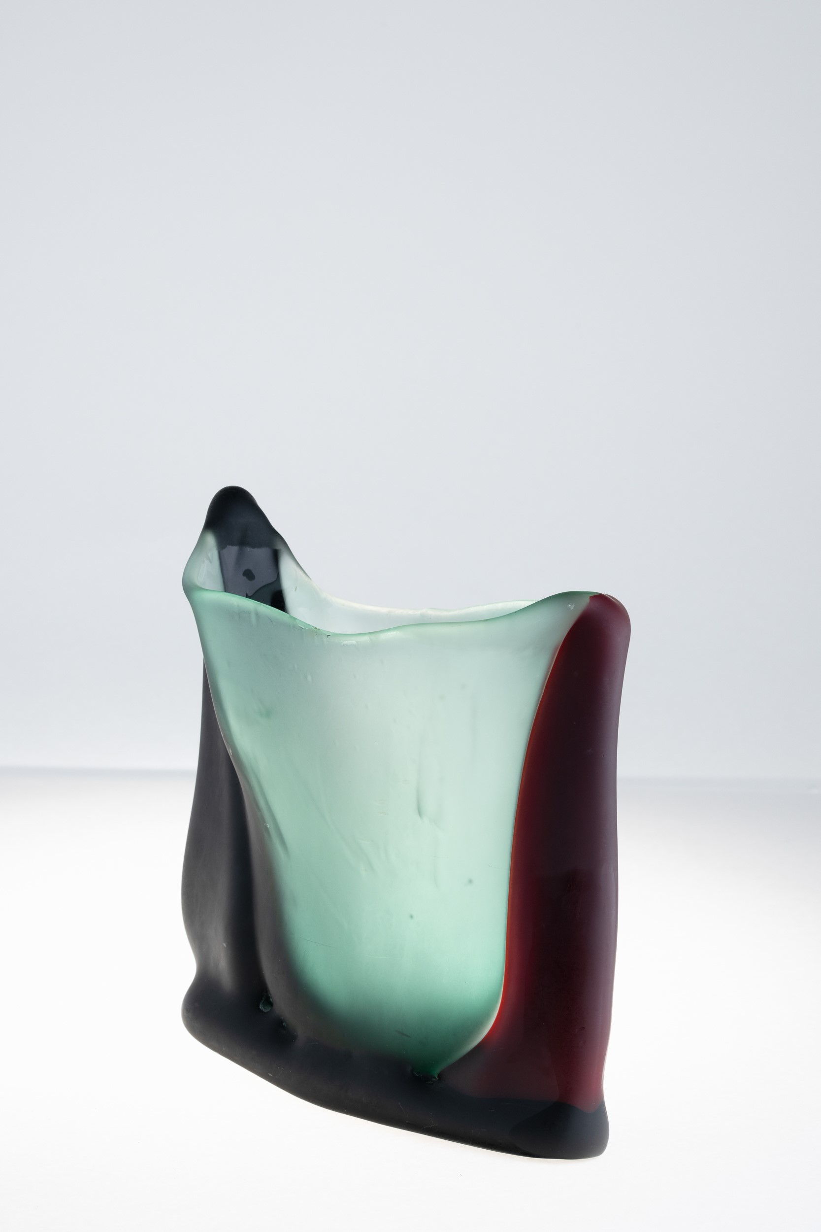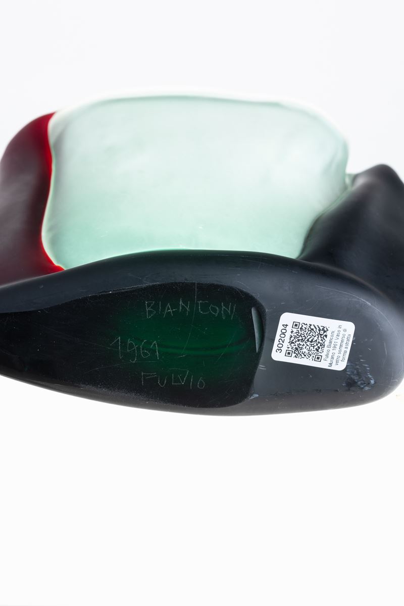 A heat-moulded heavy glass vase. Etched signature Bianconi 1961 Fulvil