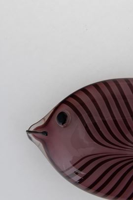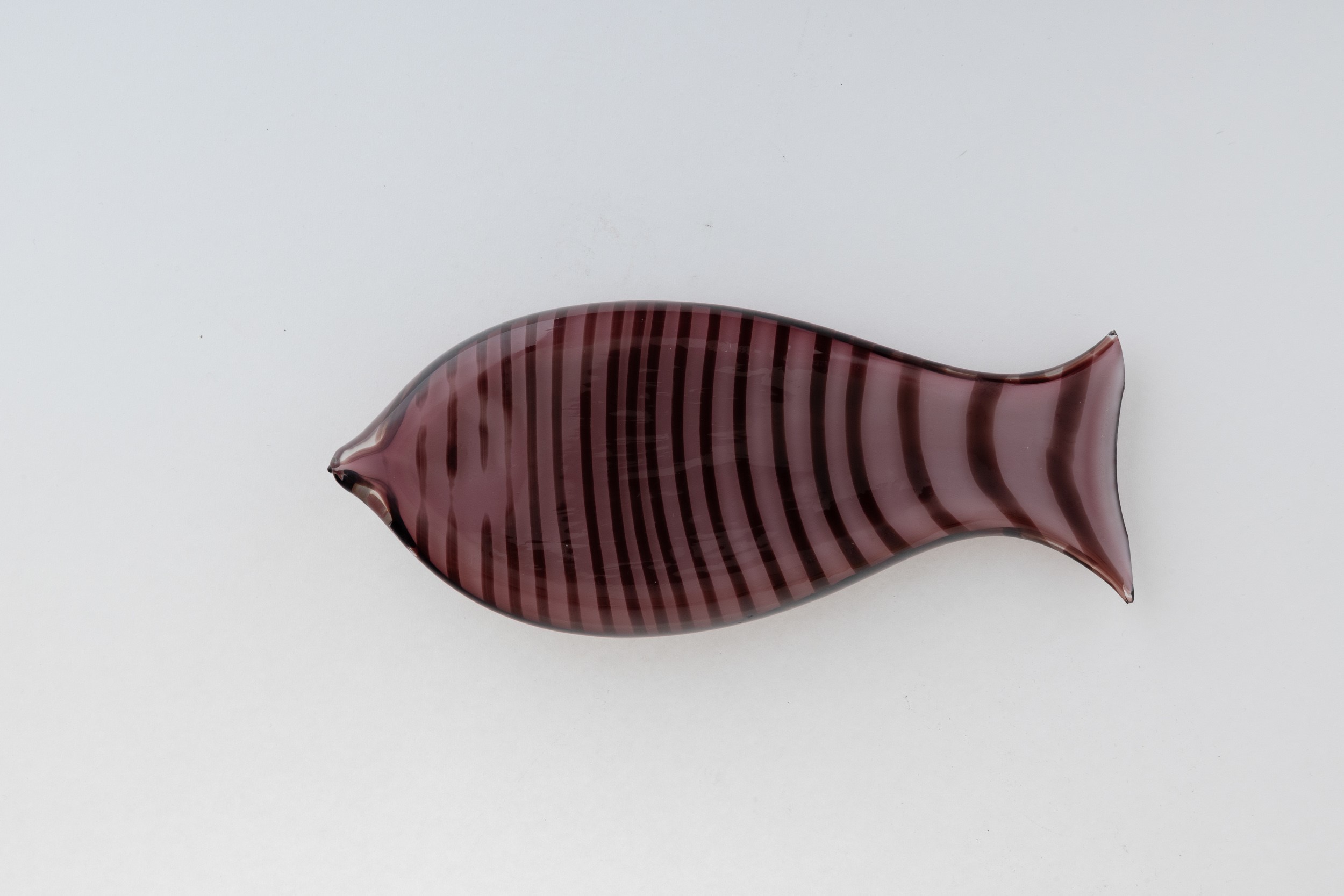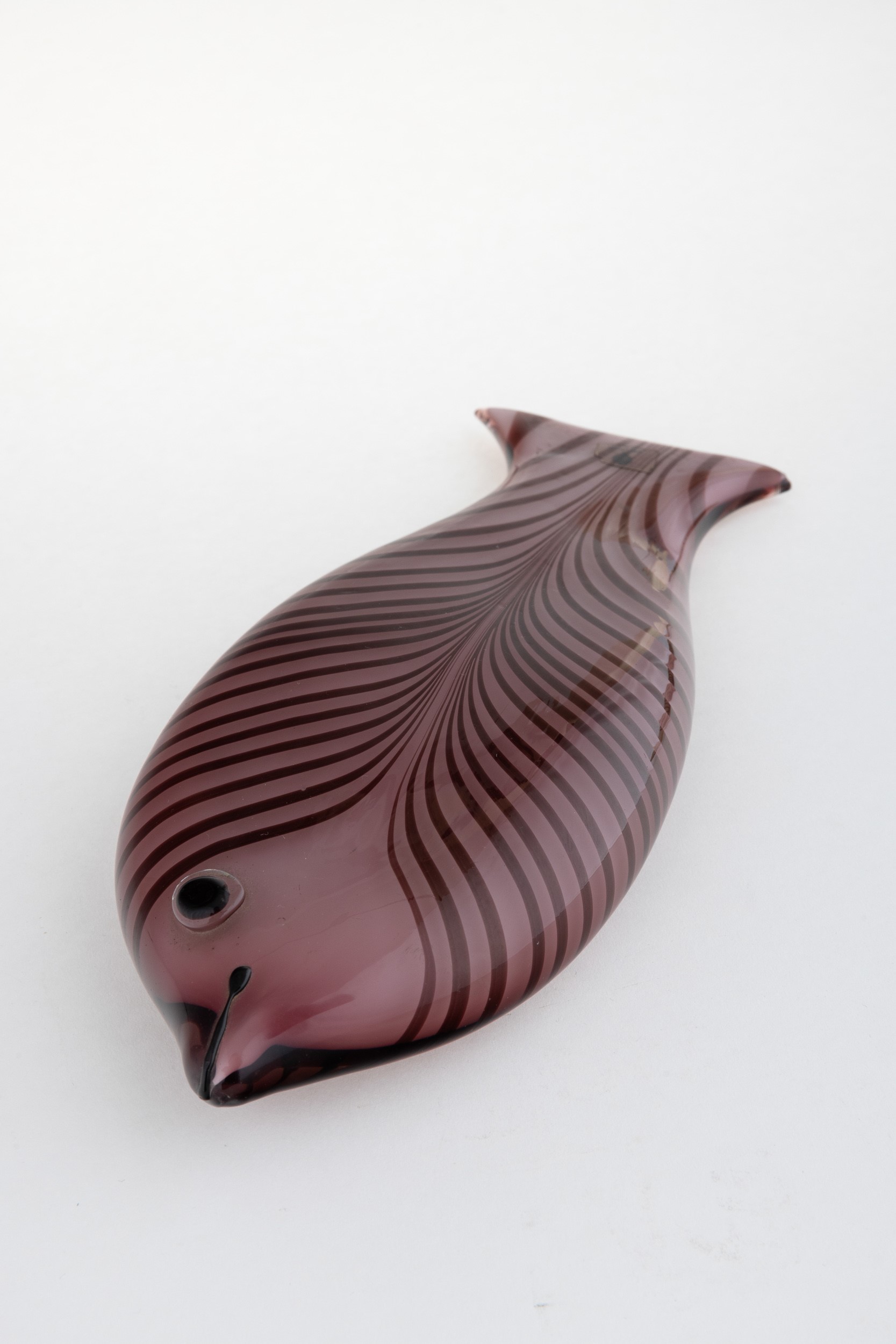 A sommerso glass fish with a Phoenician decor. Etched signature and date Venini Italia 80 KS and old label. Chipped parts