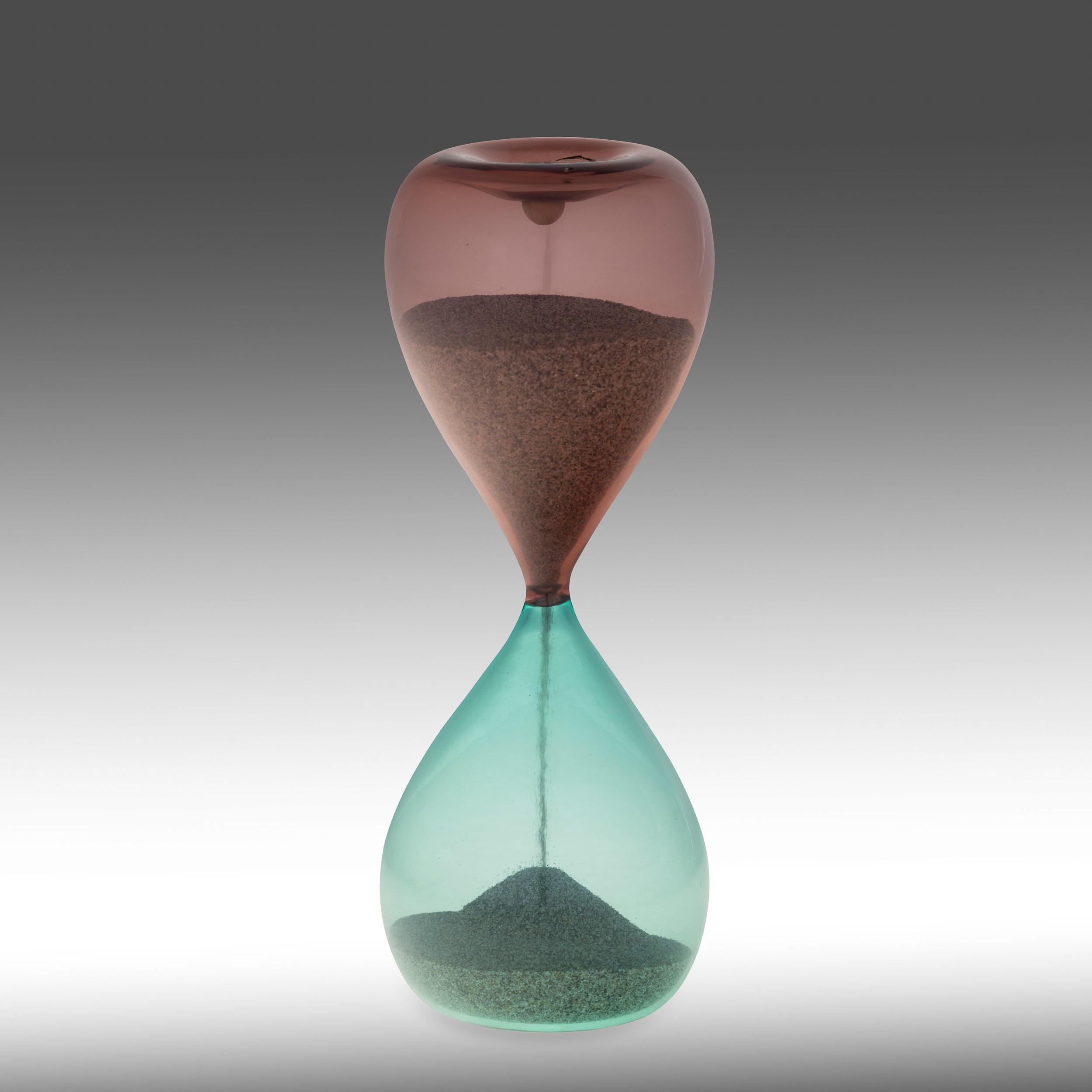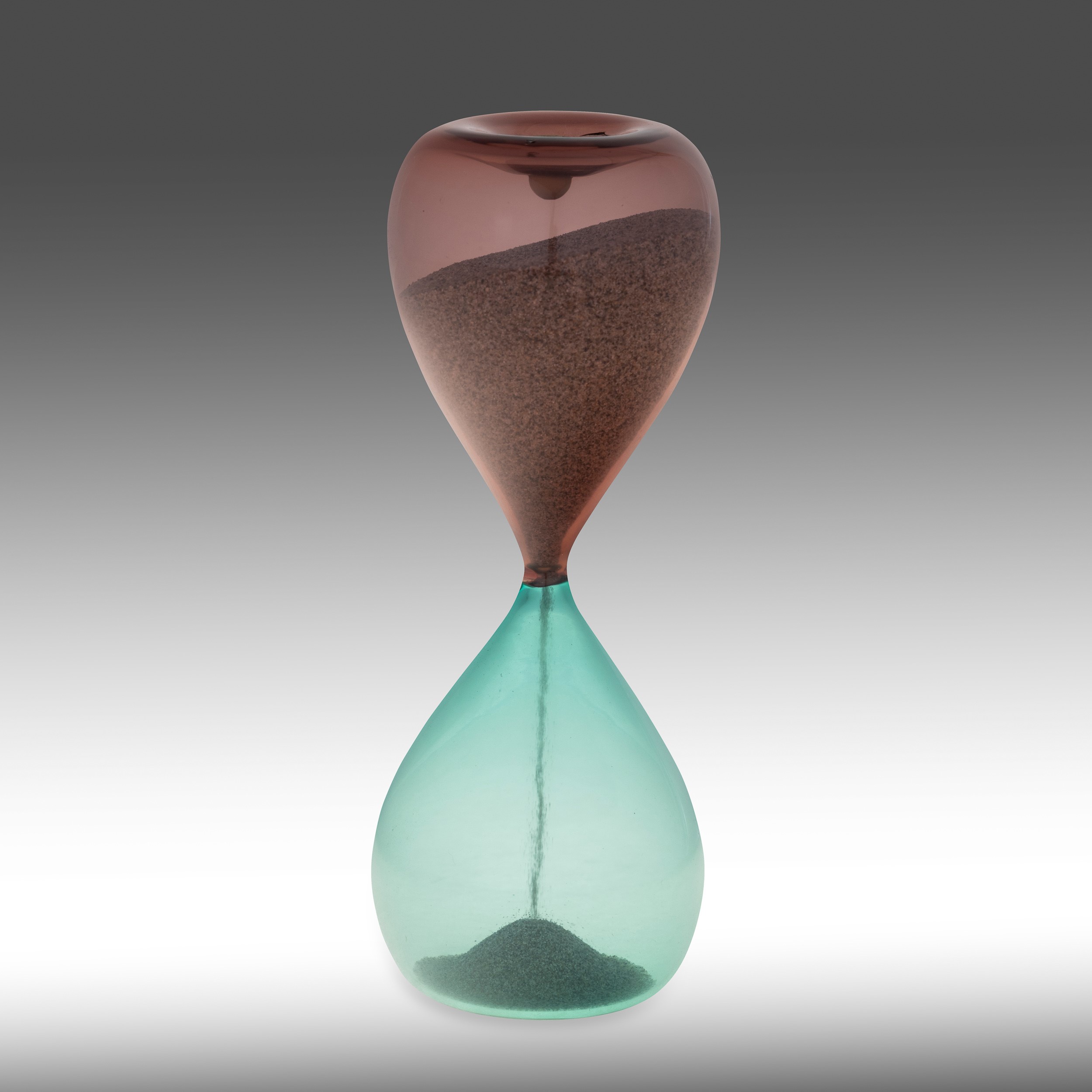 A two-tone blown glass hourglass. Etched signature Venini Italia