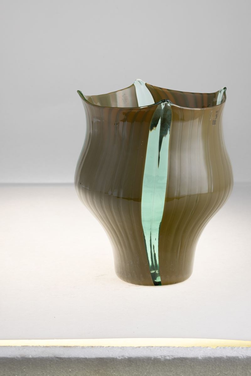 A blown glass vase from the Barena series with a band decor. Etched signature Venini Italia TZ 81 and old label
