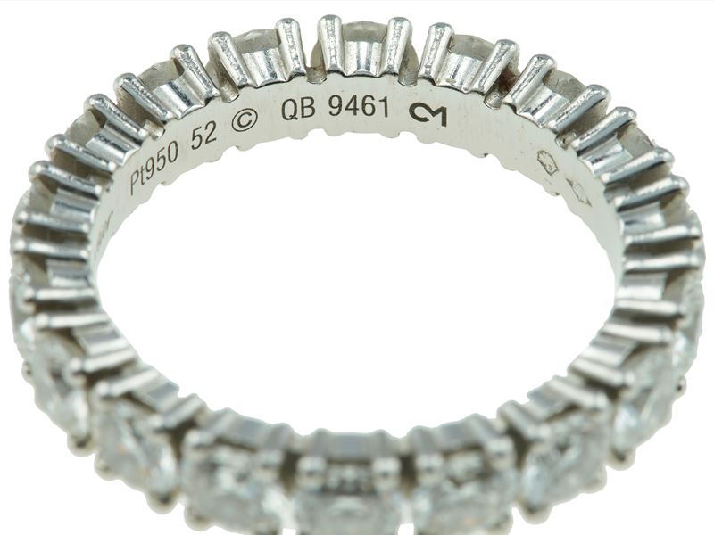 Brilliant-cut diamond and platinum ring. Signed and numbered Cartier, QB 9461. Pouch stamped Cartier