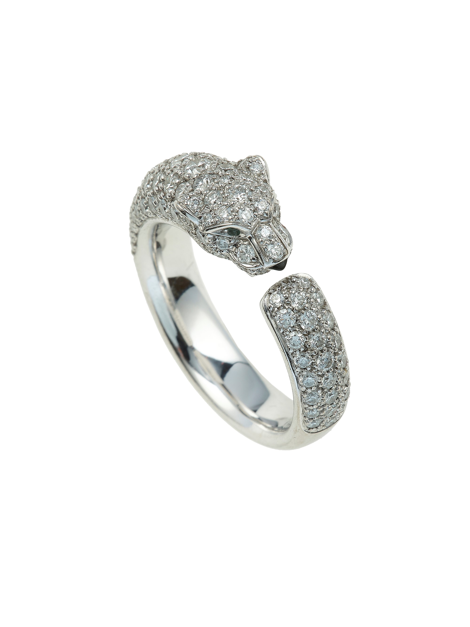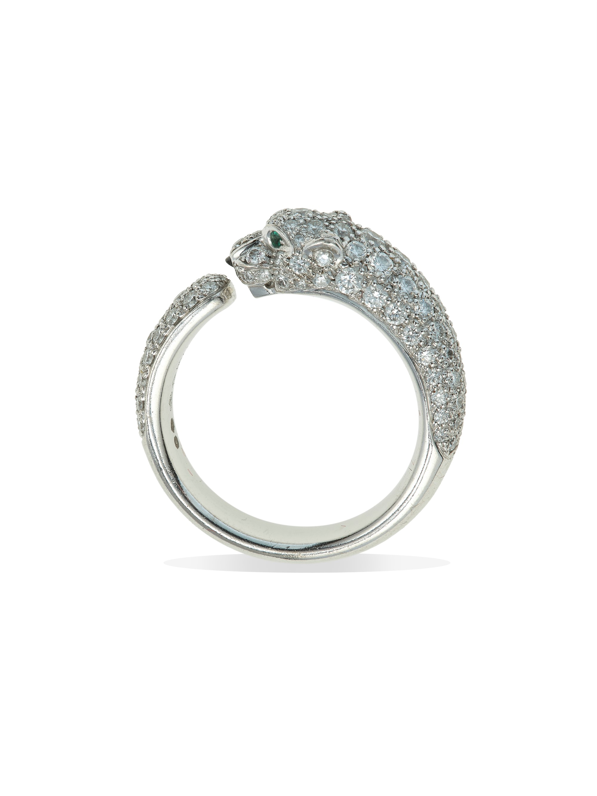 Diamond, emerald and gold "Panthère de Cartier" ring. Signed and numbered Cartier, TYR024. Fitted case