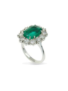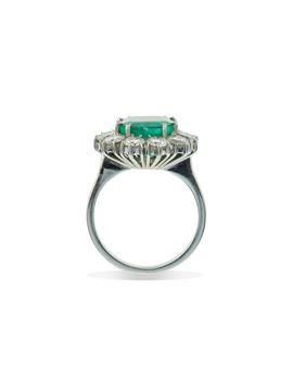 Emerald and diamond cluster ring. Gemmological Report IGI Milano n. 55684