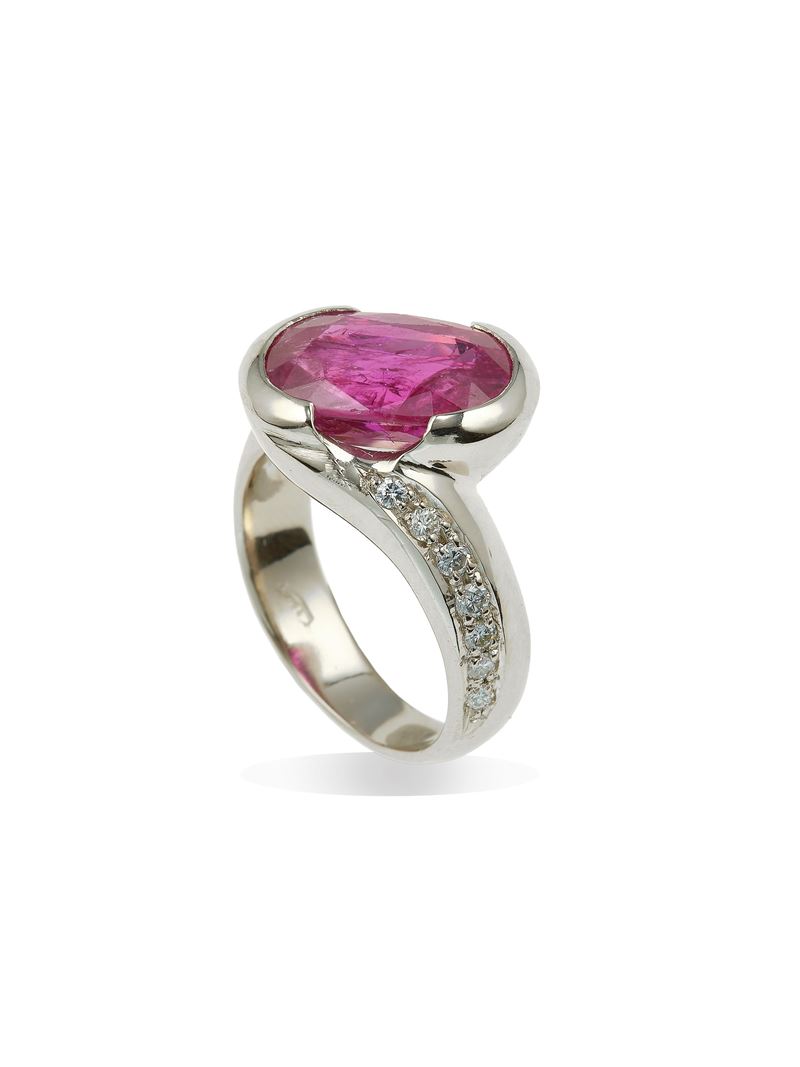 Ruby, diamond and gold ring. Gemmological Report R.A.G. Torino n. J24028mn