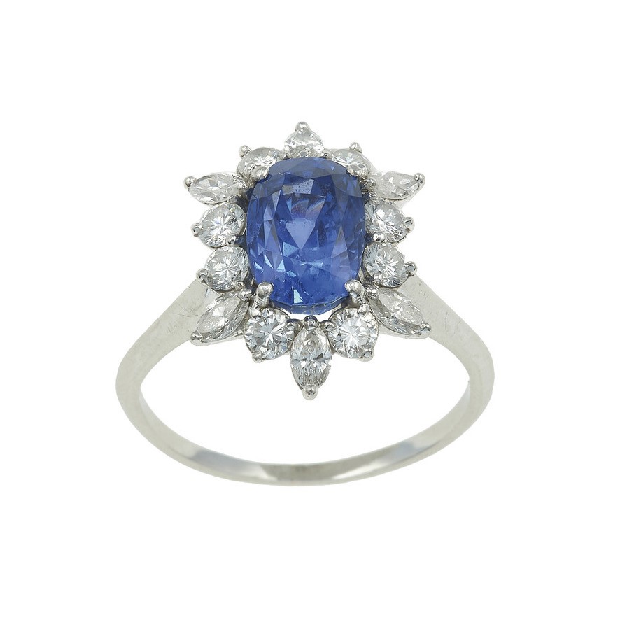 Sapphire and diamond cluster ring. No indications of heating
