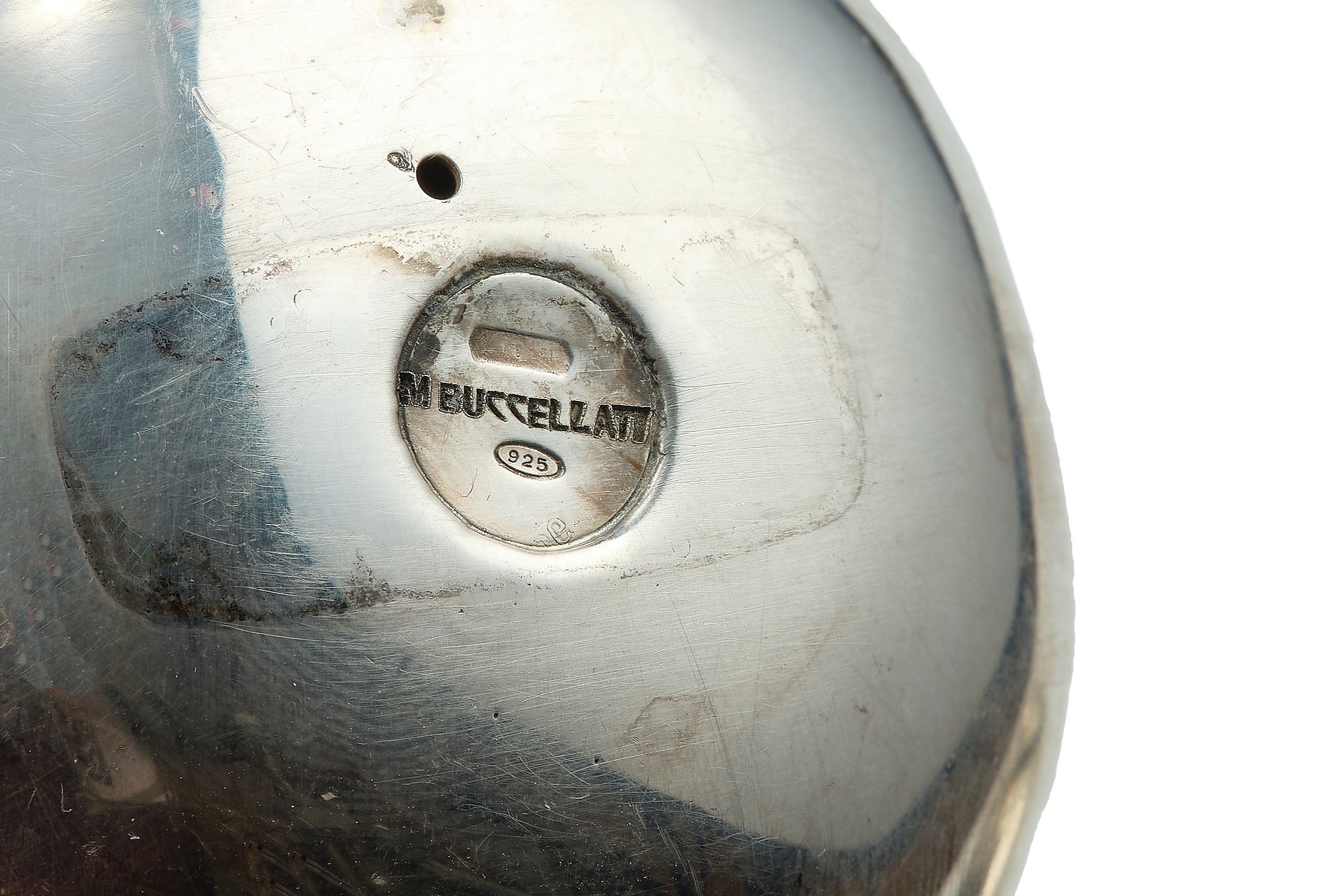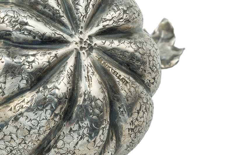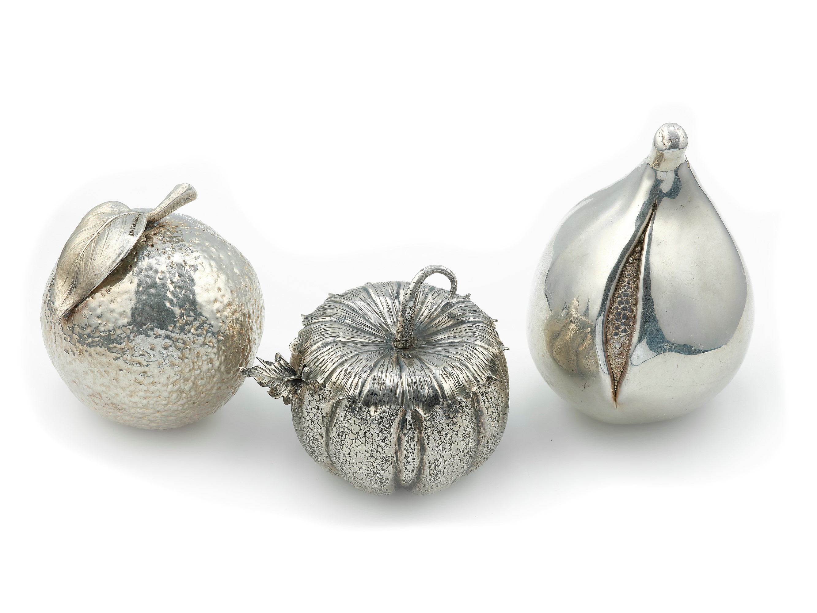 Three silver objects. Signed M. Buccellati. The pumpkin is a salt cellar