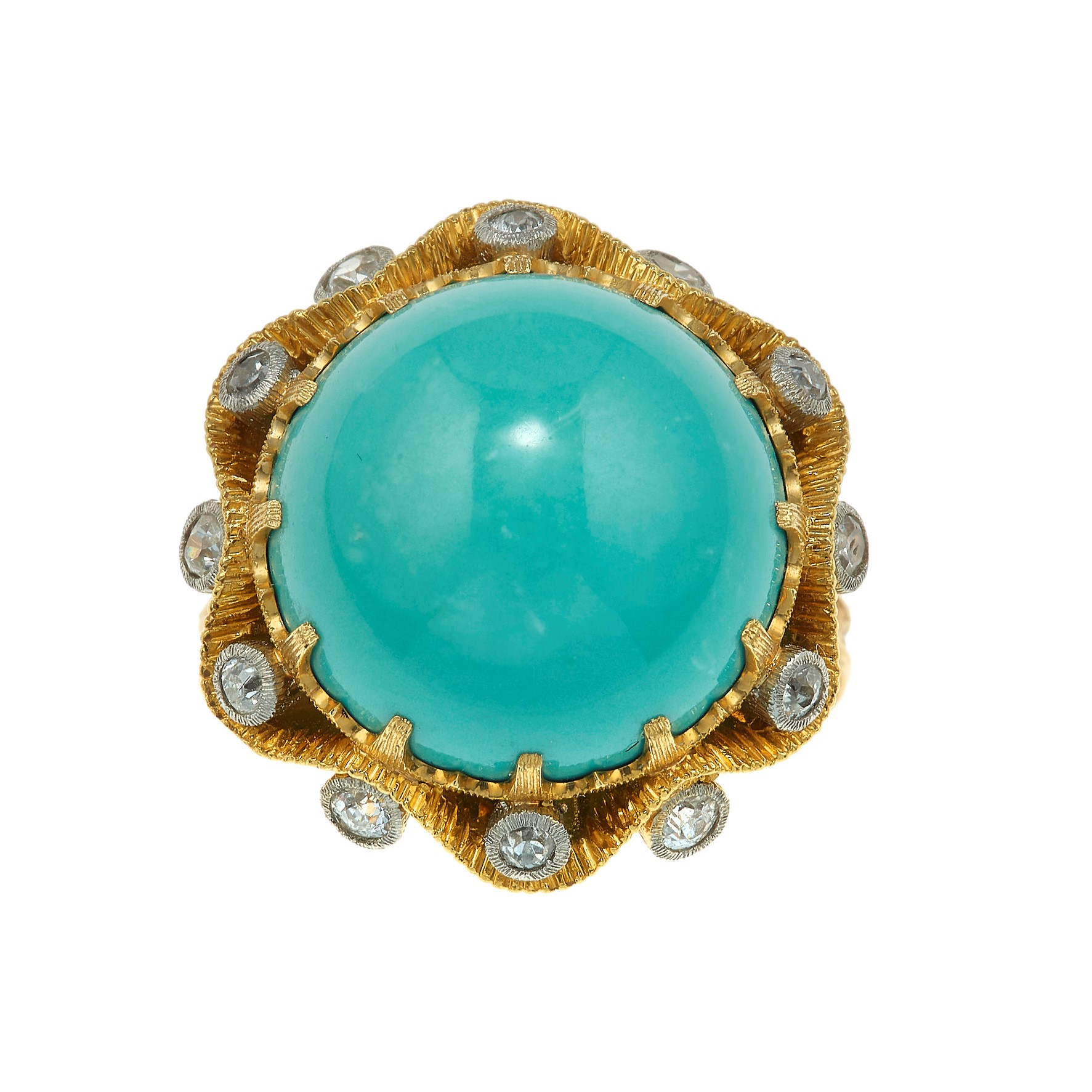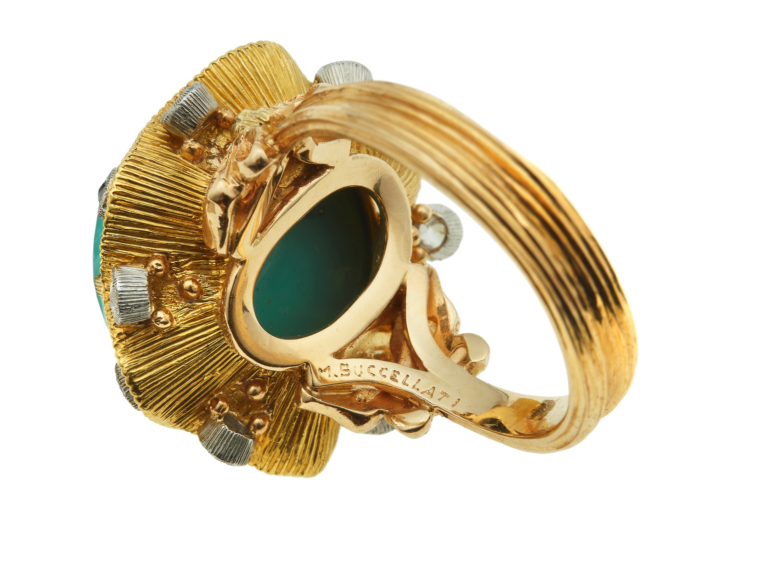 Turquoise, diamond and gold ring. Signed M. Buccellati