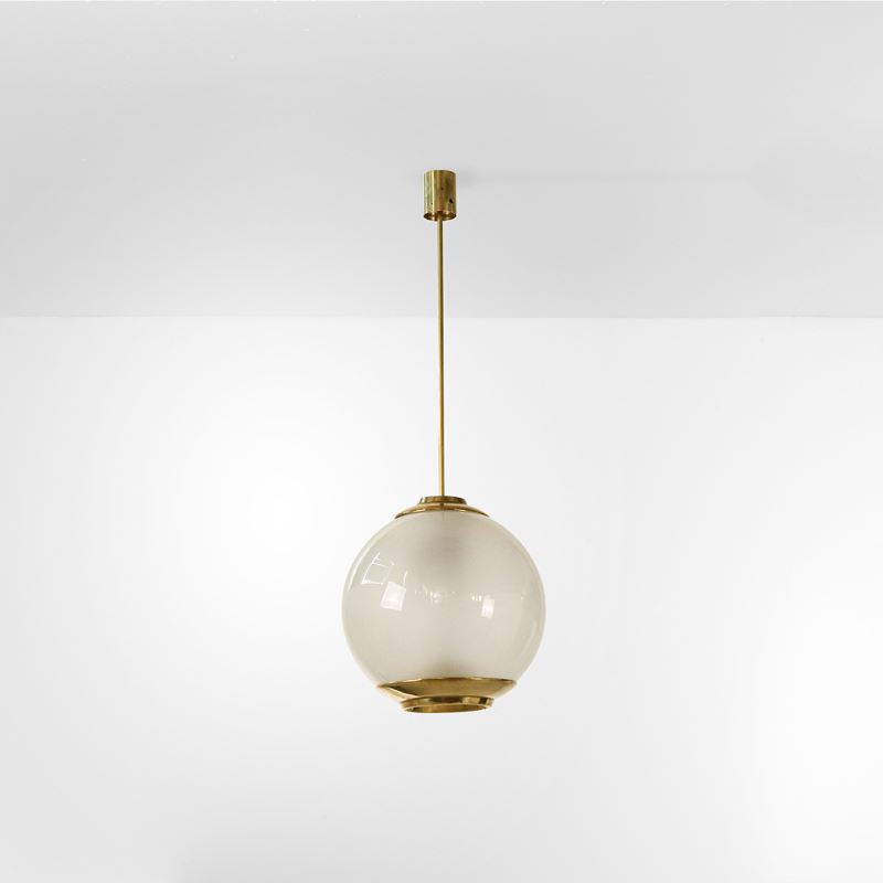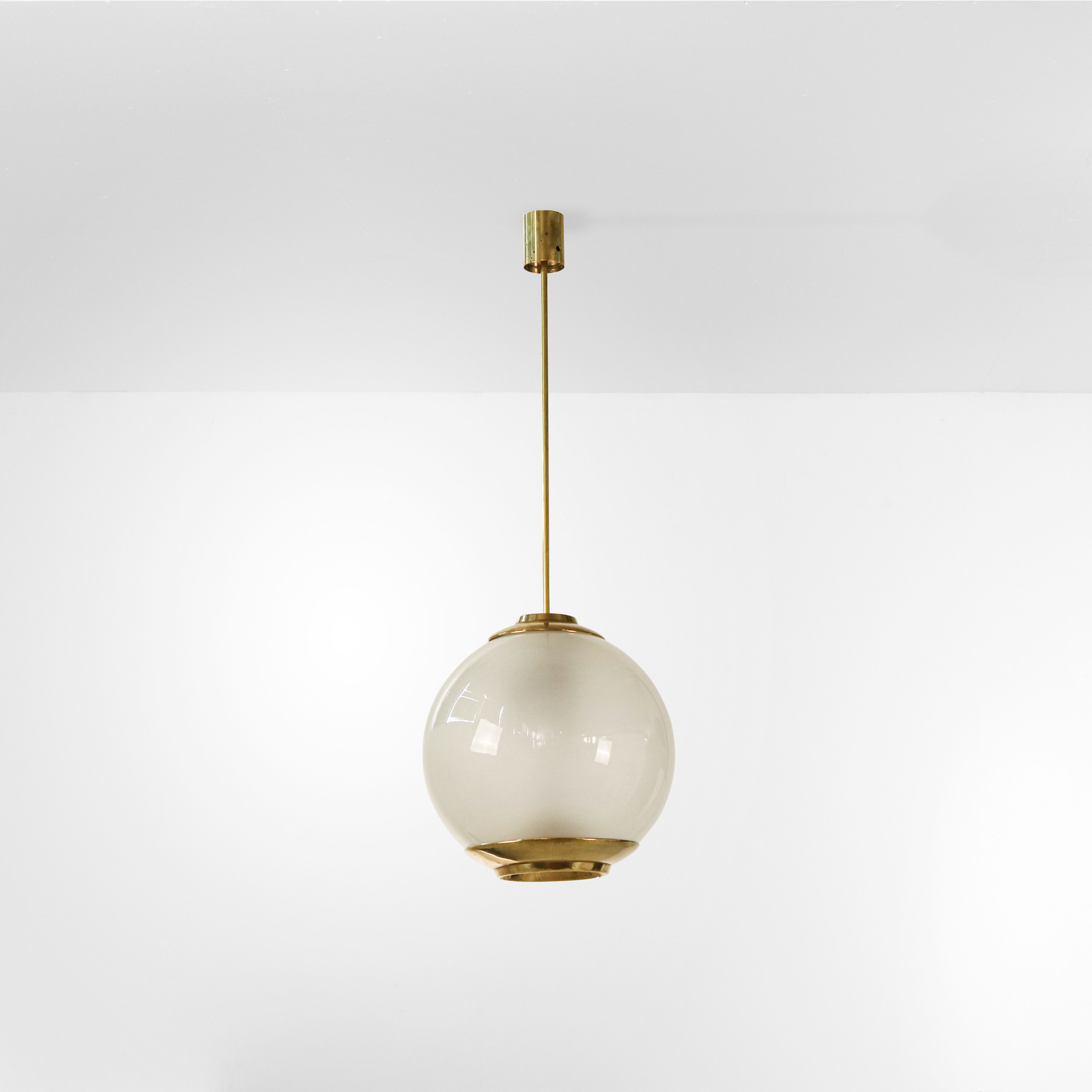 Struttura in ottone e diffusore in vetro satinato.