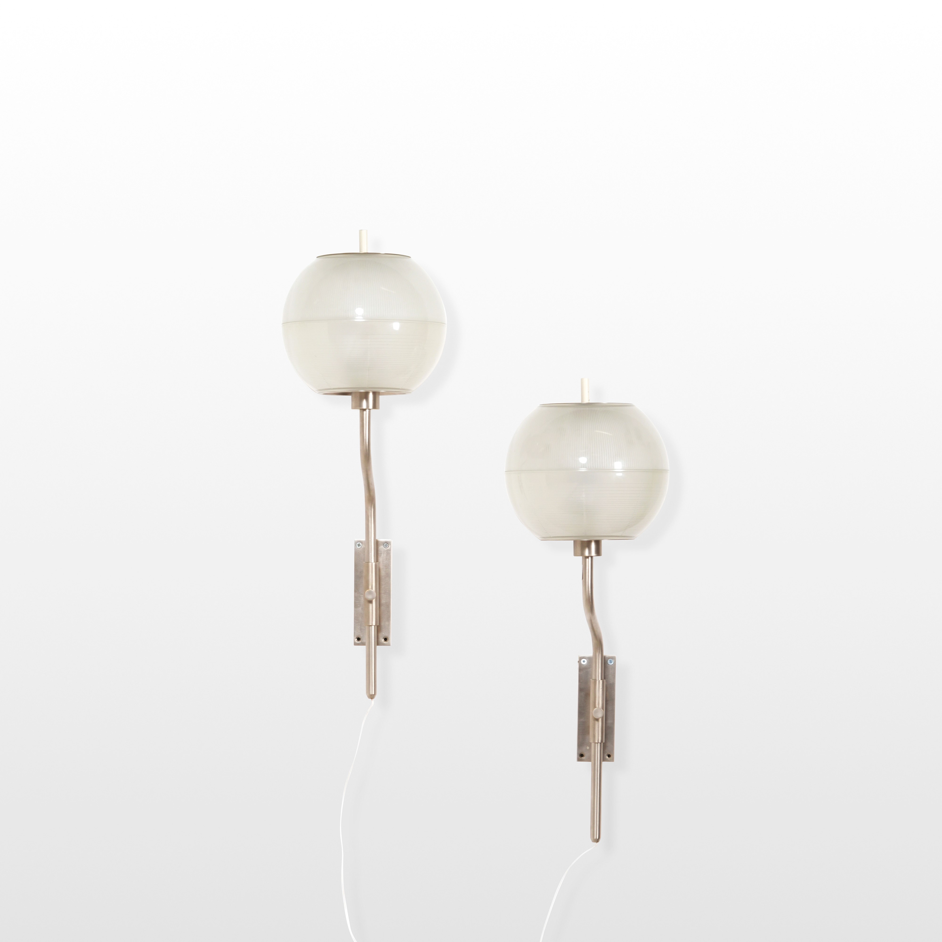 Struttura orientabile e regolabile in ottone nichelato e diffusori in vetro stampato.