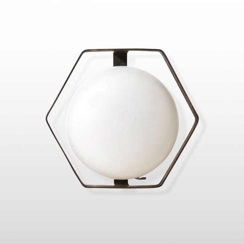 Struttura in ottone e diffusore in vetro opalino.