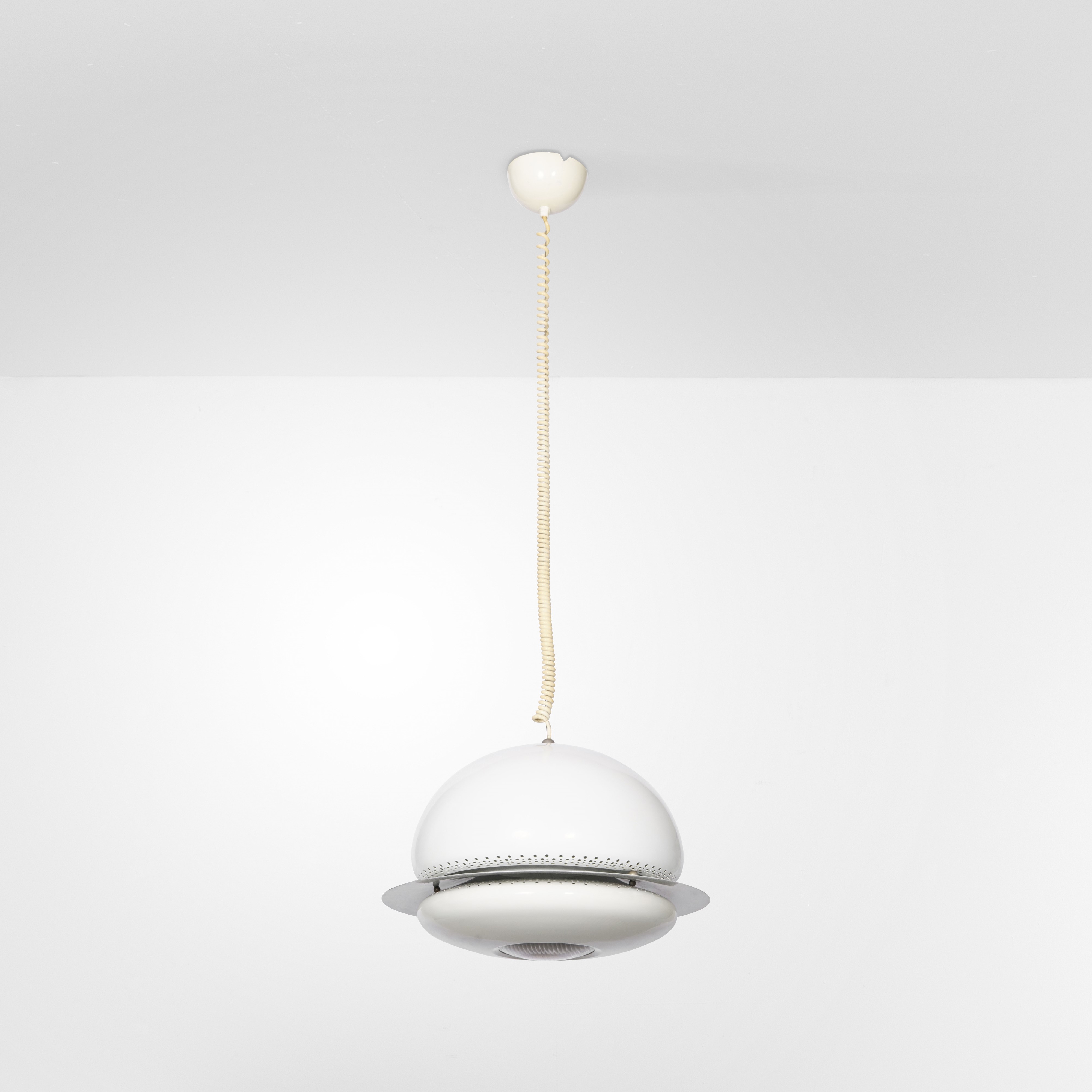 Struttura e diffusore in metallo laccato con riflettore in vetro.