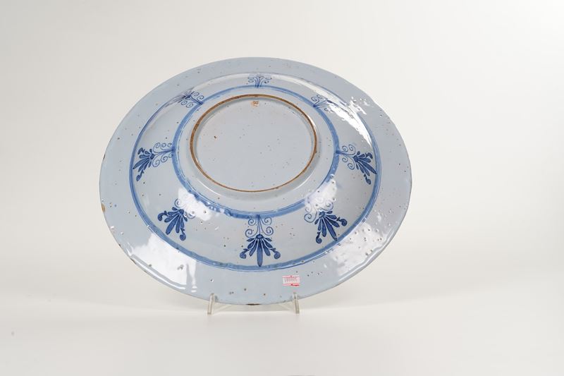 Maiolica. Marca: assente. Diametro cm 41. Conservazione: ottima; insignificanti salti di smalto al bordo.