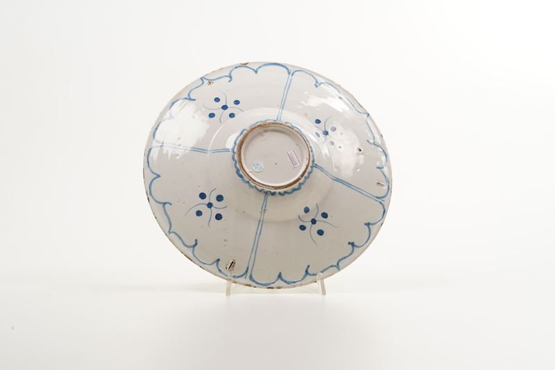 Maiolica decorata. Marca: assente. Diametro cm 29,5. Conservazione: felatura.