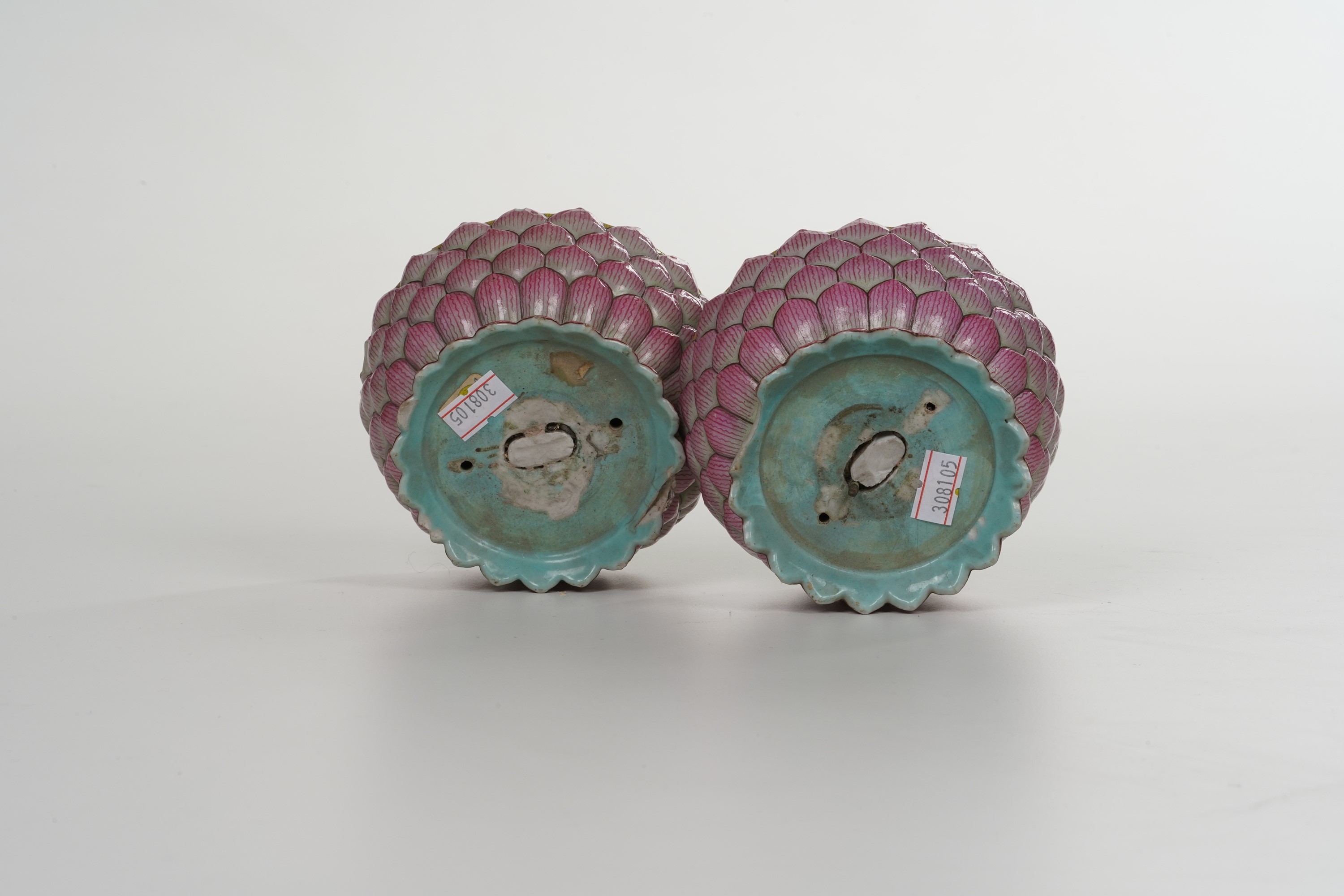 Di forma ottagonale ha sei pareti traforate e due piene lavorate a vimini sulla superficie esterna. I manici a rocaille sono fortemente rialzati. La decorazione pittorica a “deutsche Blumen” vede all’interno della cestina mazzetti di fiori policromi e ramoscelli fioriti sparsi
