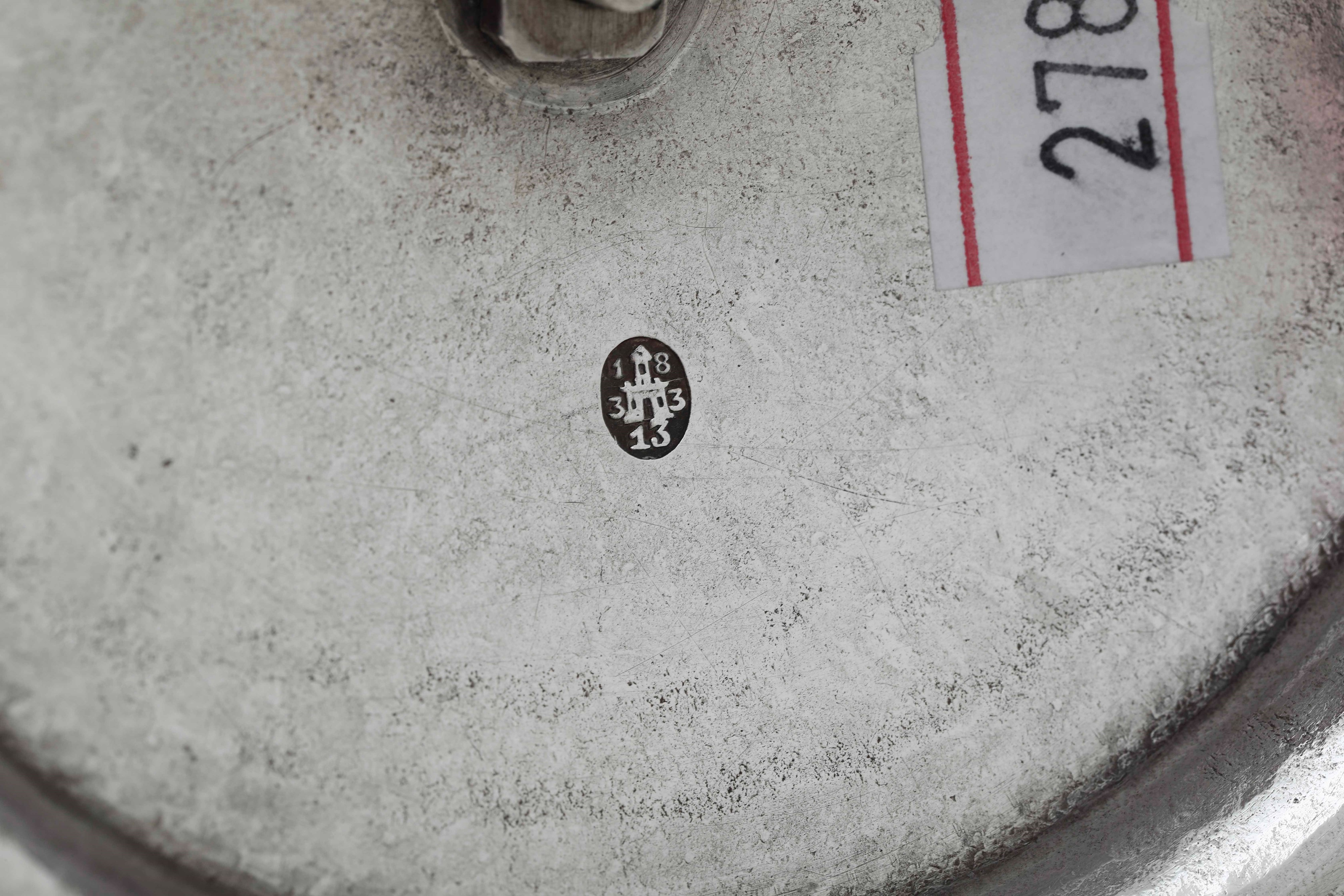 Silversmith's mark GA (unidentified). Molten, embossed and chiselled silver, ivory handle