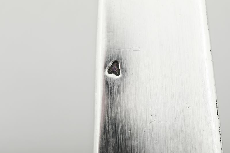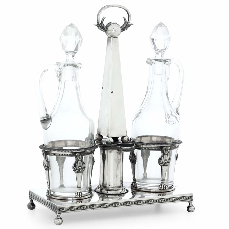 Argento fuso, sbalzato e ampolle in vetro