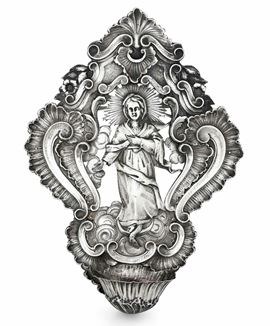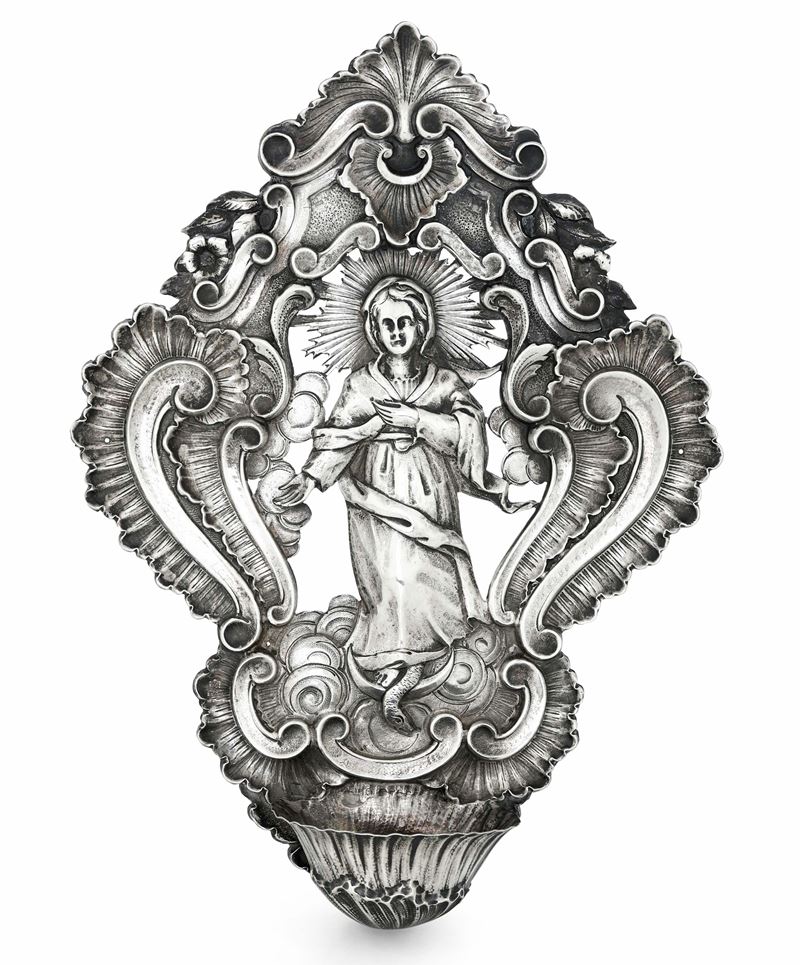 Acquasantiera con immacolata. Genova, marchio della "Torretta" per l'anno (1)760
