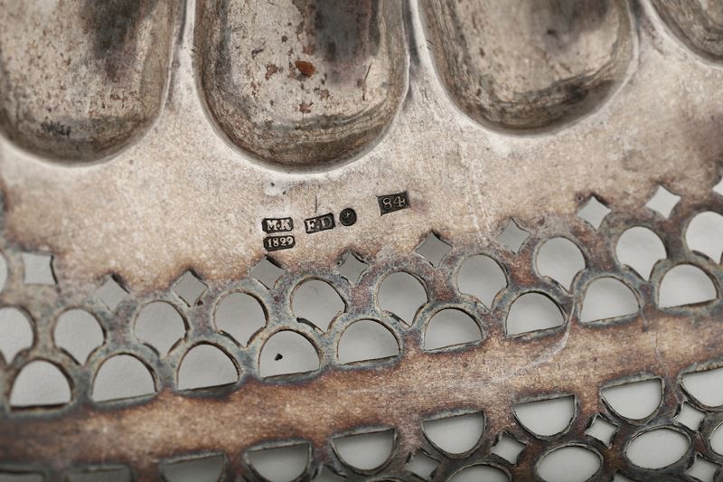 Cestino. Sanpietroburgo, 1829. Assaggiatore H.Karpinskiy. Marchio dell'argentiere F.D. entro rettangolo (non identificato [..]