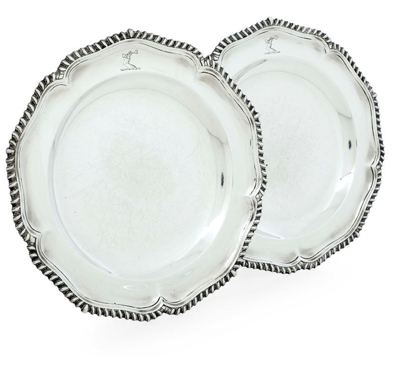 Coppia di piatti. Londra, 1890. Argentiere B B entro doppio semicerchio (non identificato)