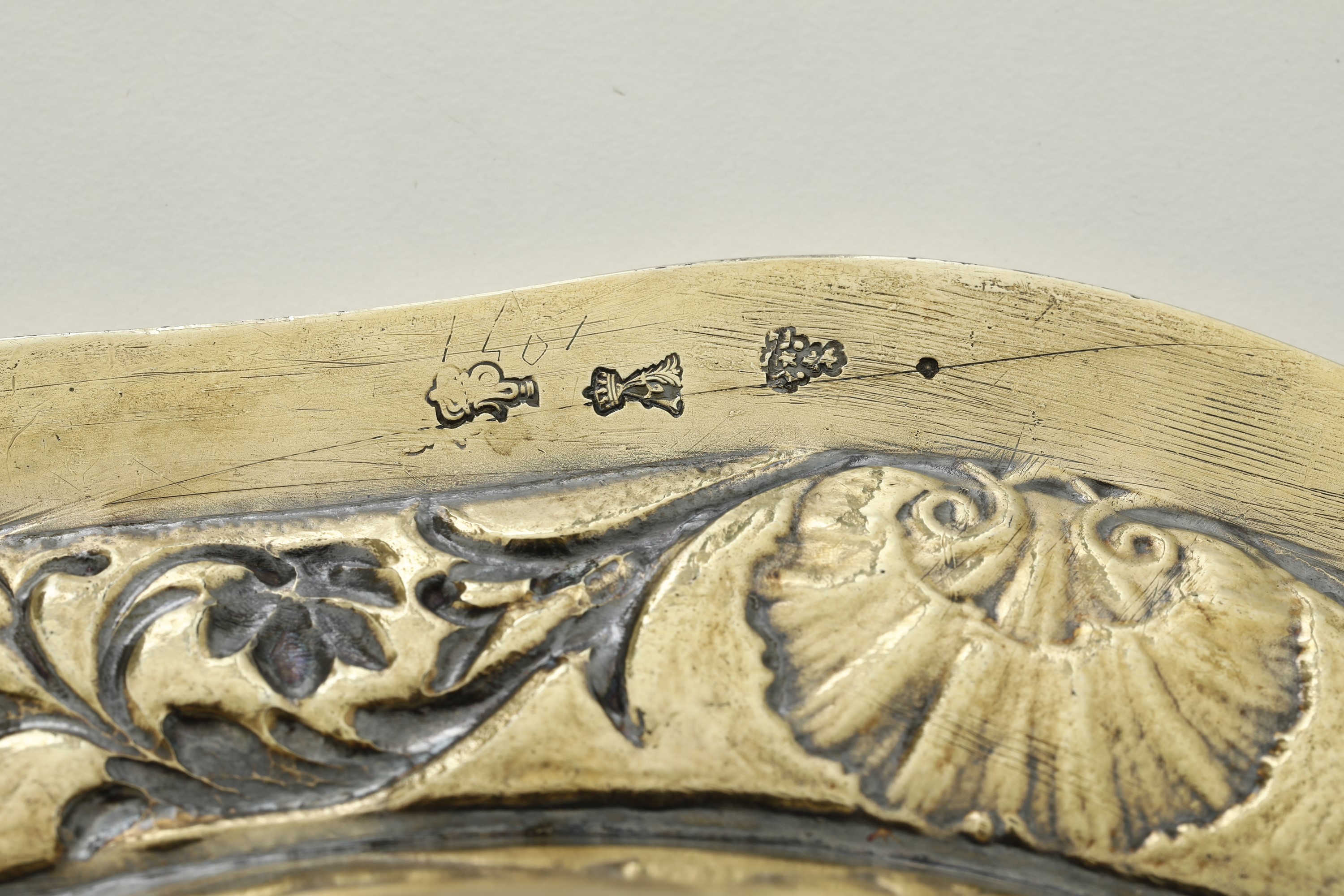 Coppia di piatti vermeille. Parigi, ultimo ventennio del XVIII secolo, marchi di ricontrollo in uso dal 1938 e marchio dell'argentiere consunto di difficile lettura