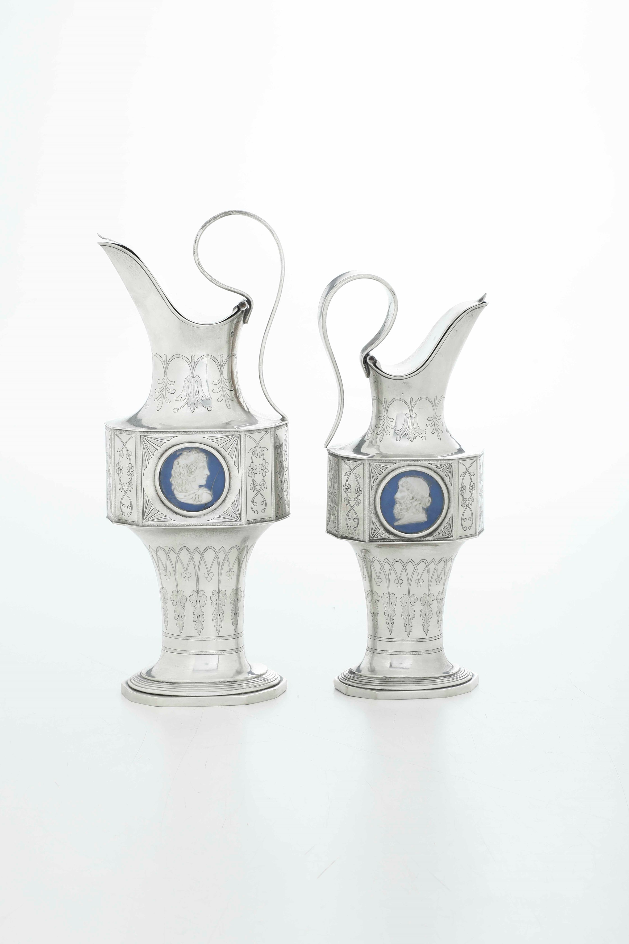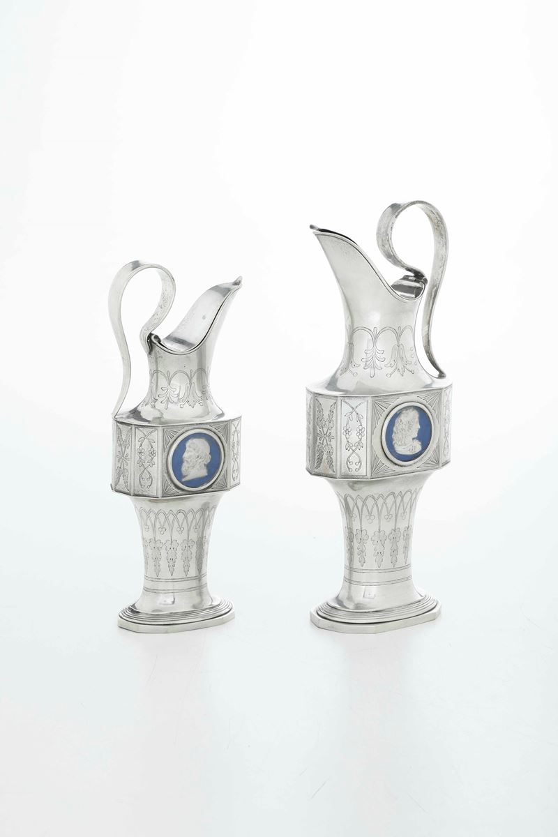 Coppia di versatoi. Argento fuso, sbalzato, cesellato e smaltato. Vienna 1802. Marchio dell'argentiere non identificato
