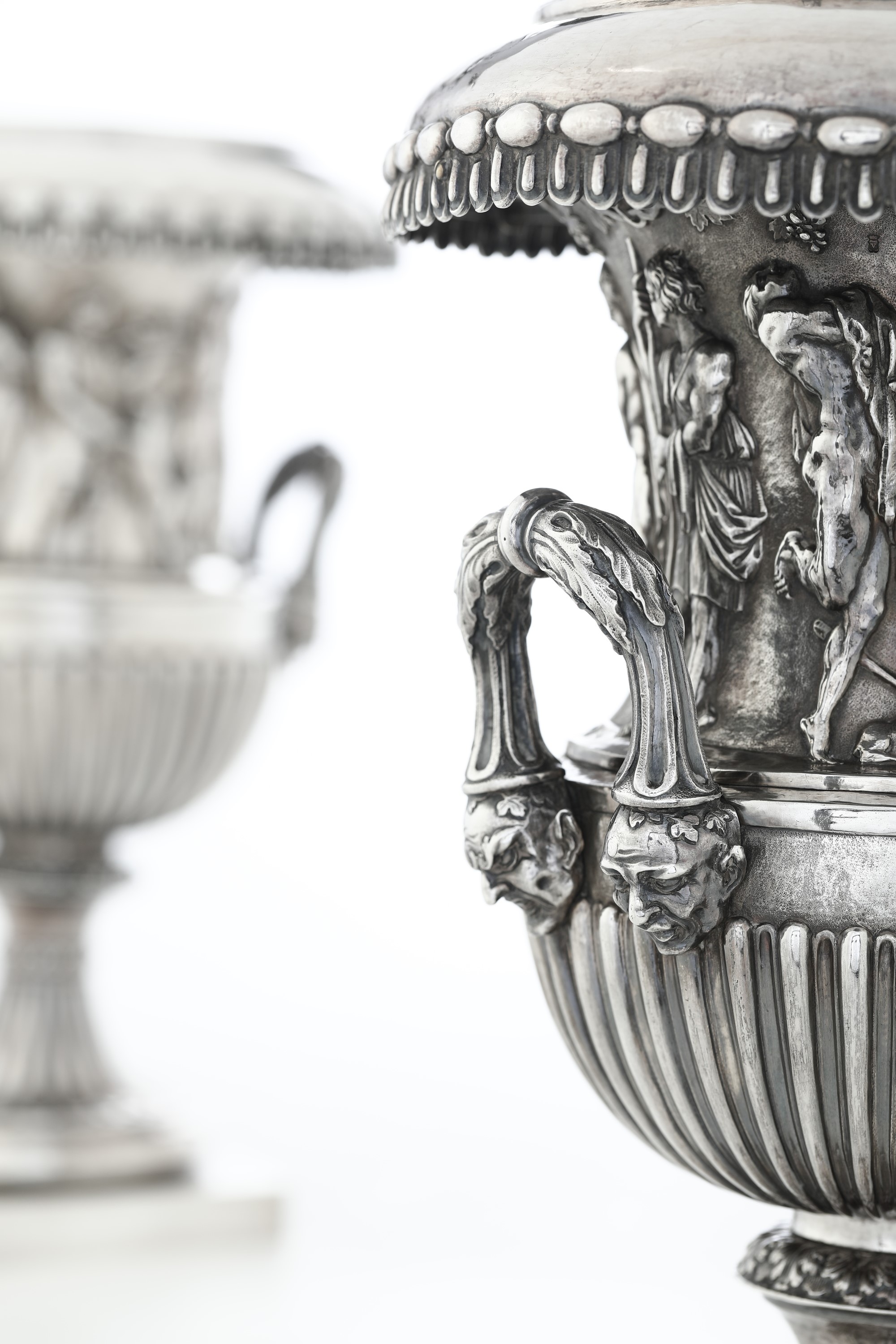 Importante coppia di vasi. Bottega all'insegna 'del Trofeo'. Maestro argentiere Andrea Fulici, documentato tra il 1720 e il 1743 (Attribuito a). Venezia, secondo quarto del XVIII secolo.