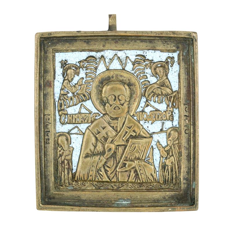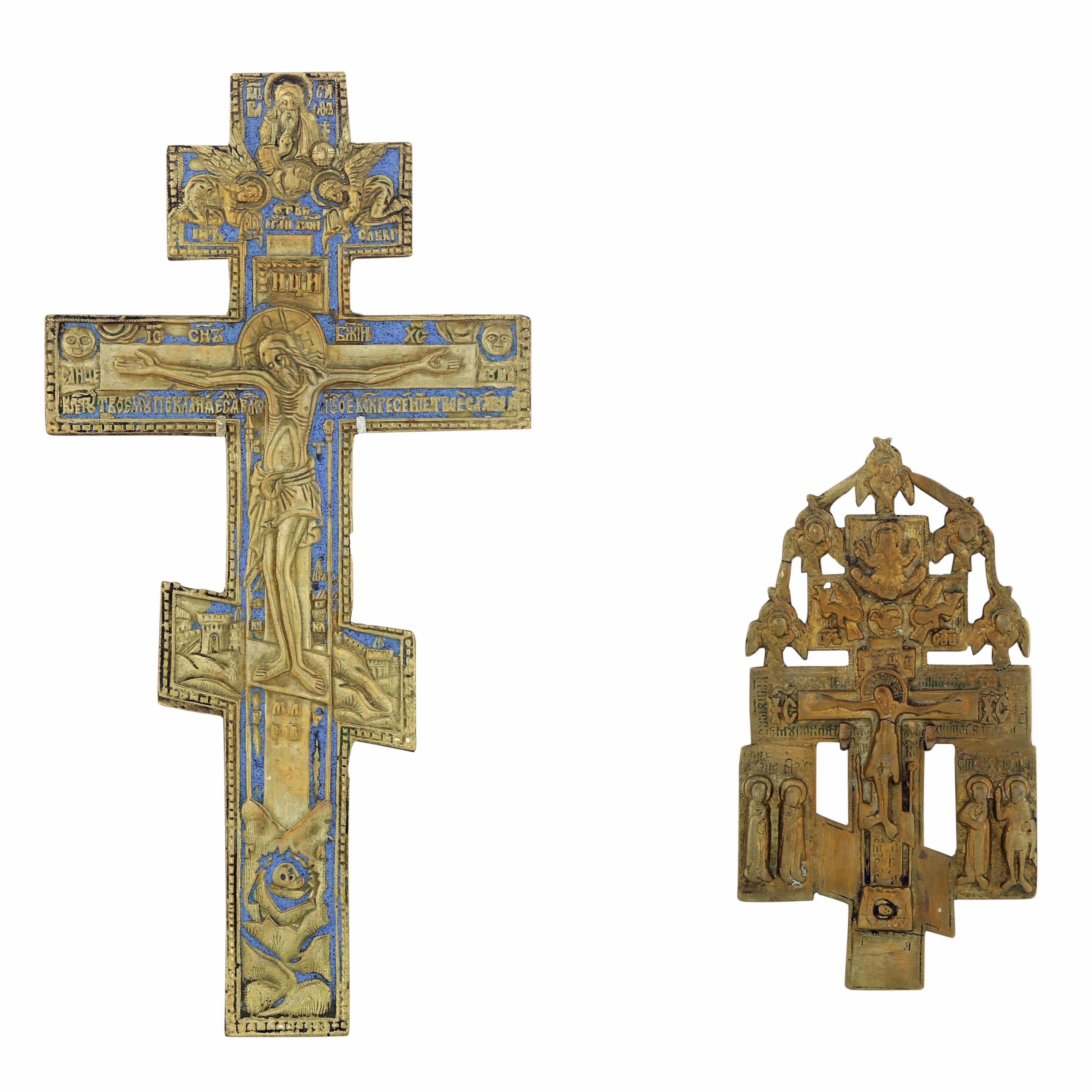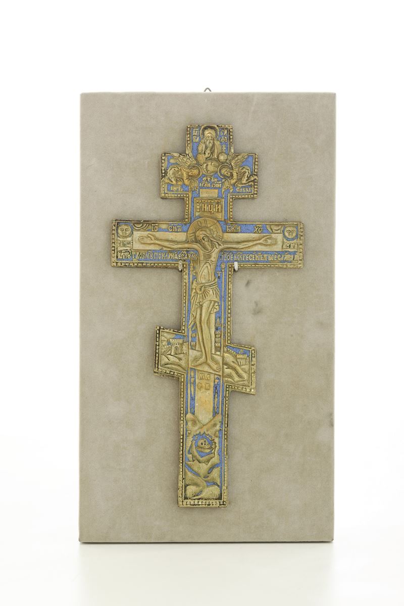 Lotto comprendente icona e due crocifissi. Russia XIX-XX secolo