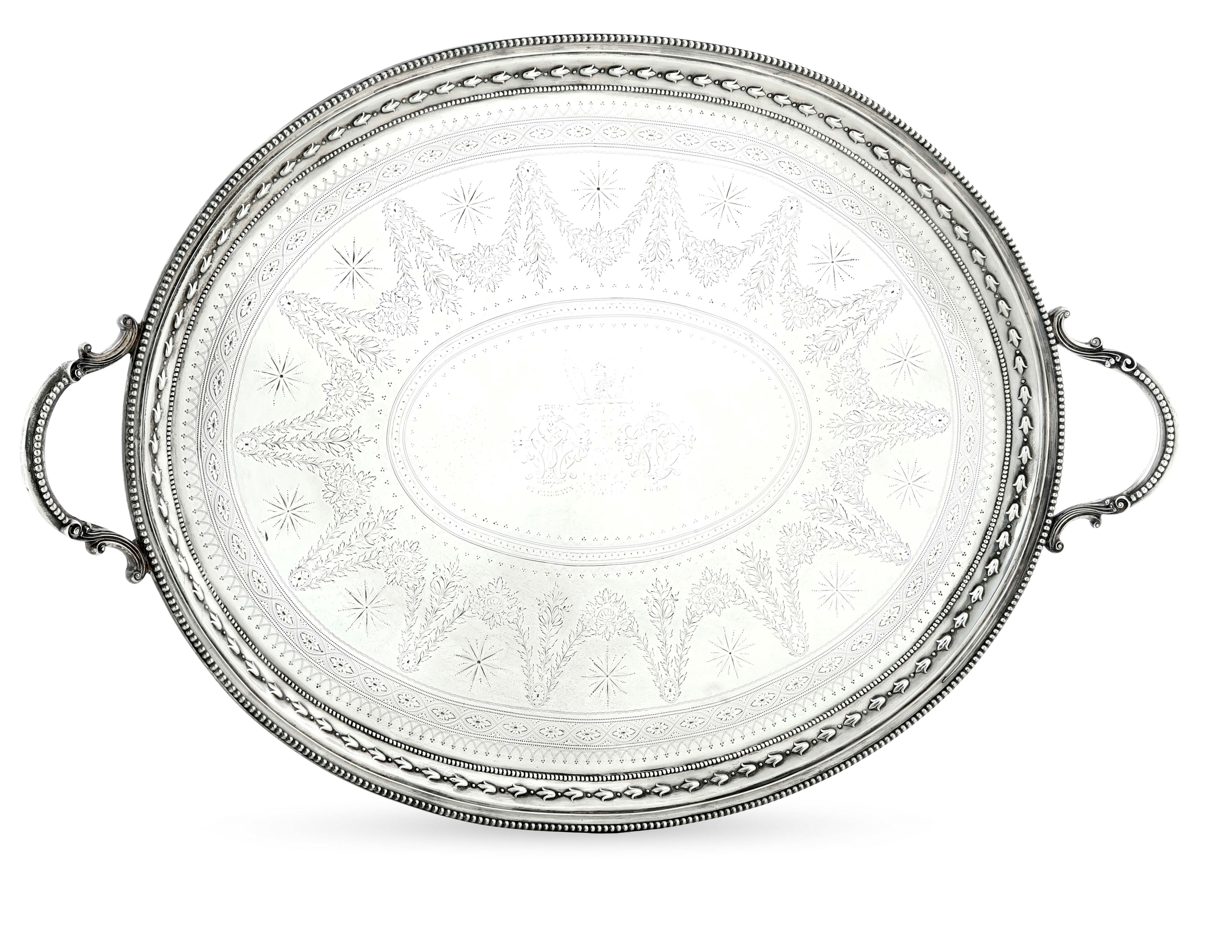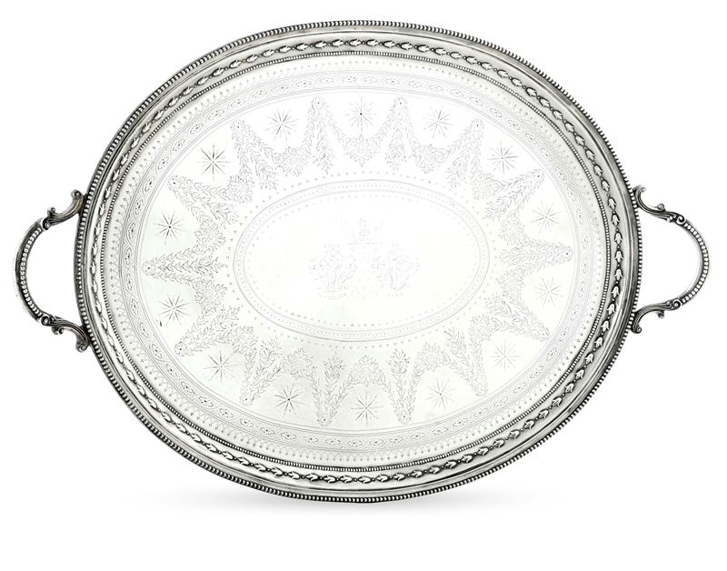 Monumentale vassoio biansato. Londra, 1868. Argentiere Daniel & Charles Houle