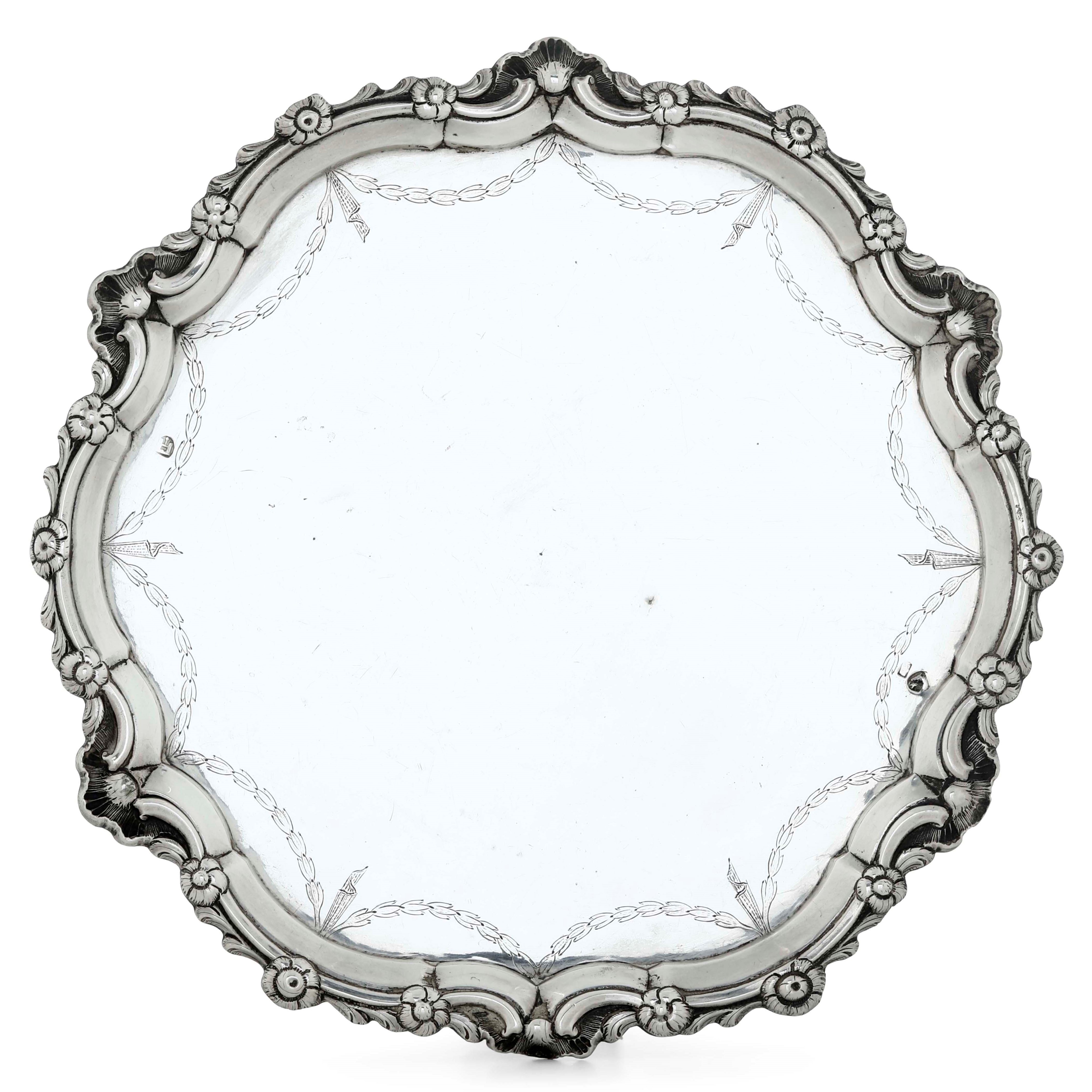 Bordo mistilineo con decori floreali e volute. Elegante cesello con motivo a festoni