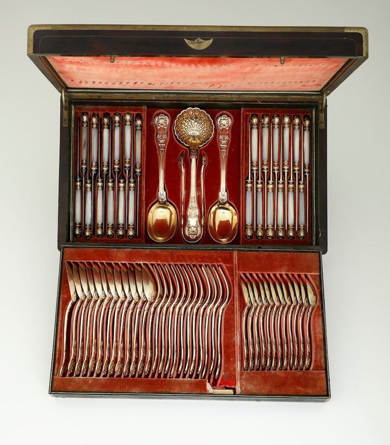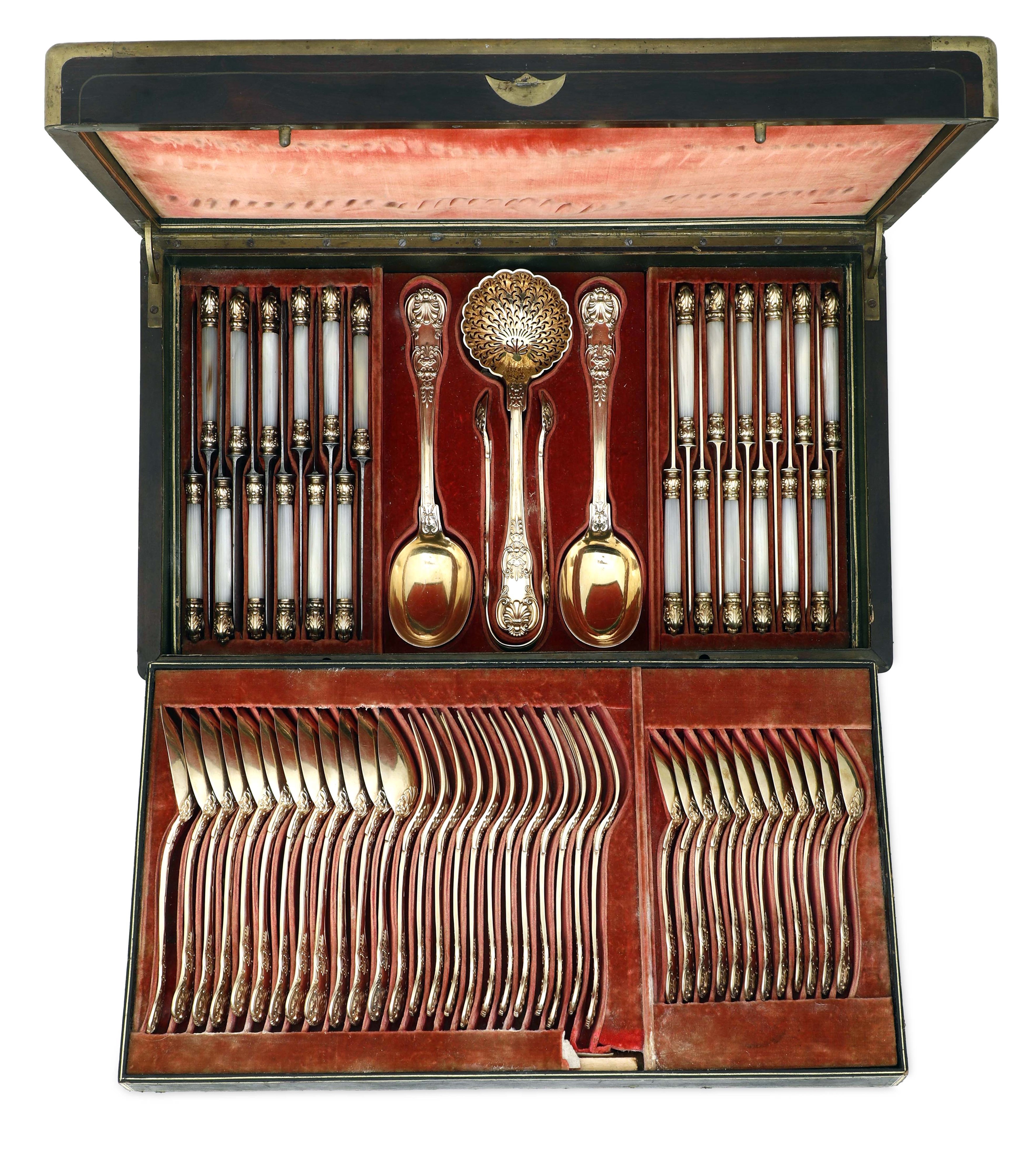 Servizio da dessert. Parigi 1819-1838. Maestro argentiere Francois-Dominique Naldin (1800-1840) e SJ inframezzato da croce egizia (non identificato)