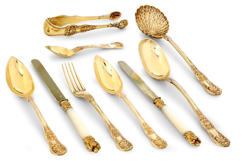 Servizio da dessert. Parigi 1819-1838. Maestro argentiere Francois-Dominique Naldin (1800-1840) e SJ inframezzato da croce [..]