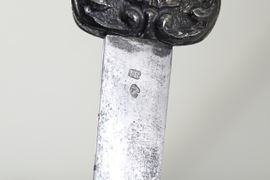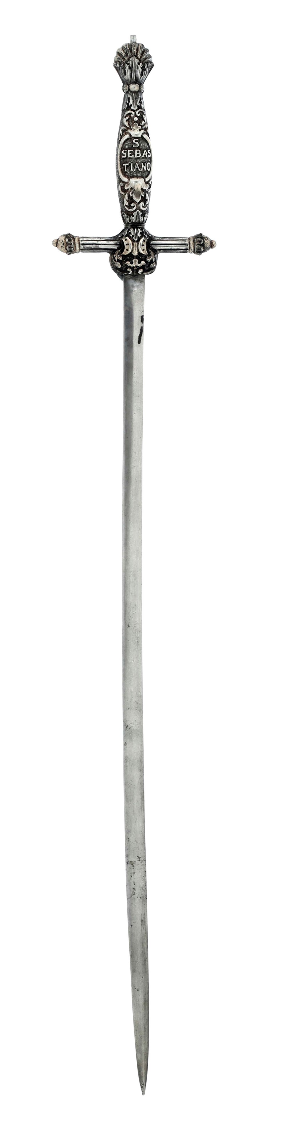 Spada di San Sabastiano. Oreficeria italiana (Napoli?), XVIII secolo. Sulla lama marchio dell'Italia Turrita in uso dal 1875