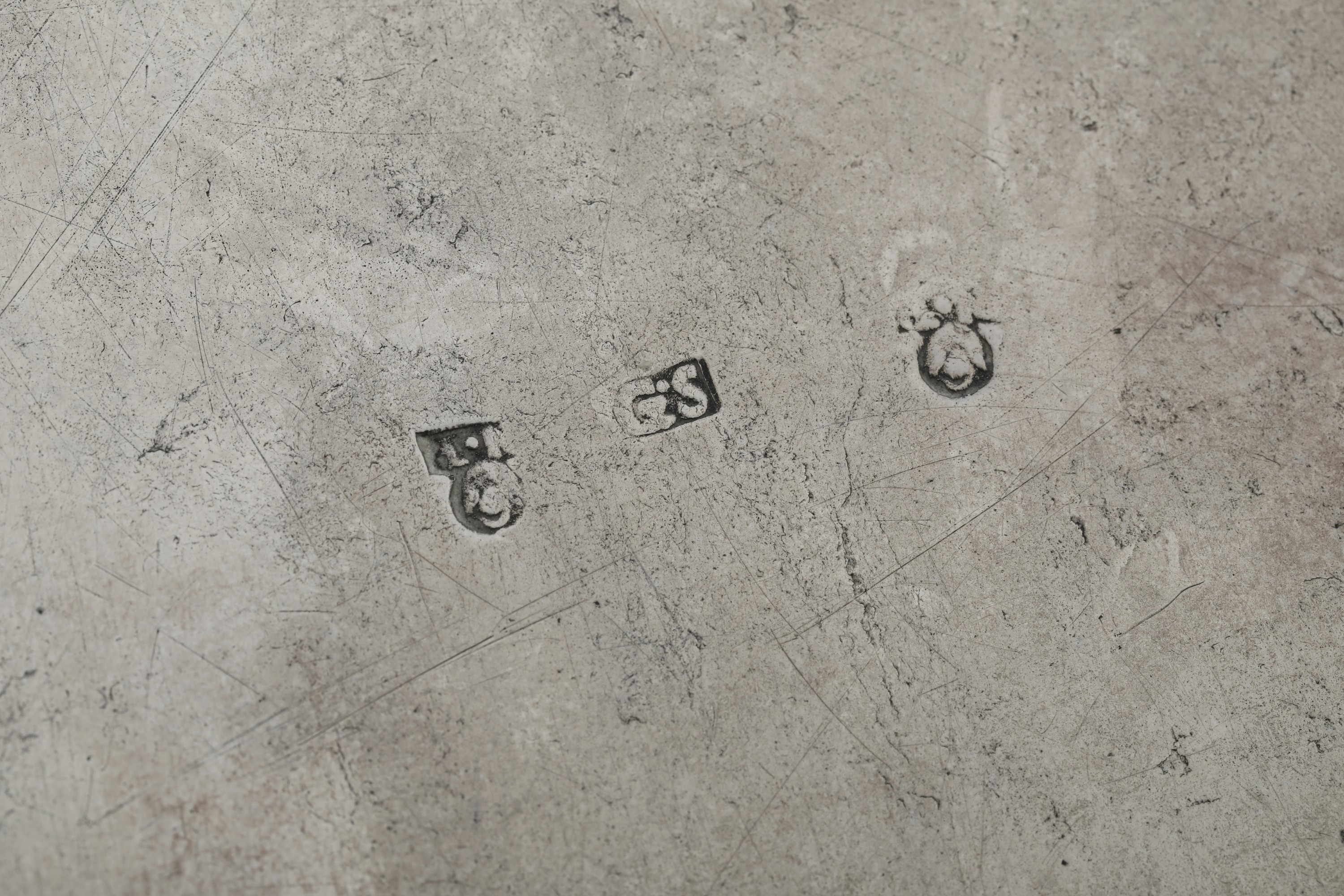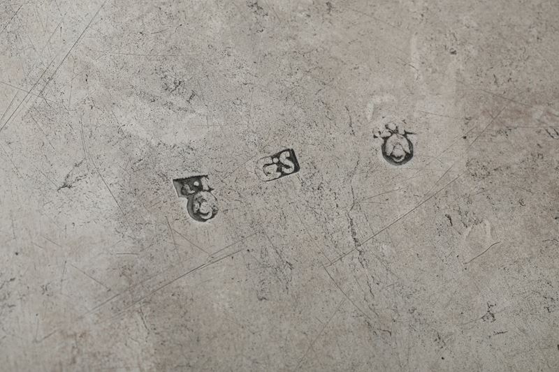 Vassoio a ringhiera traforata. Venezia, fine del XVIII secolo. Marchio del saggiatore NP (documentato ma non identificato) e dell'argentiere G S entro rettangolo (Giacomo Schiattarello?)