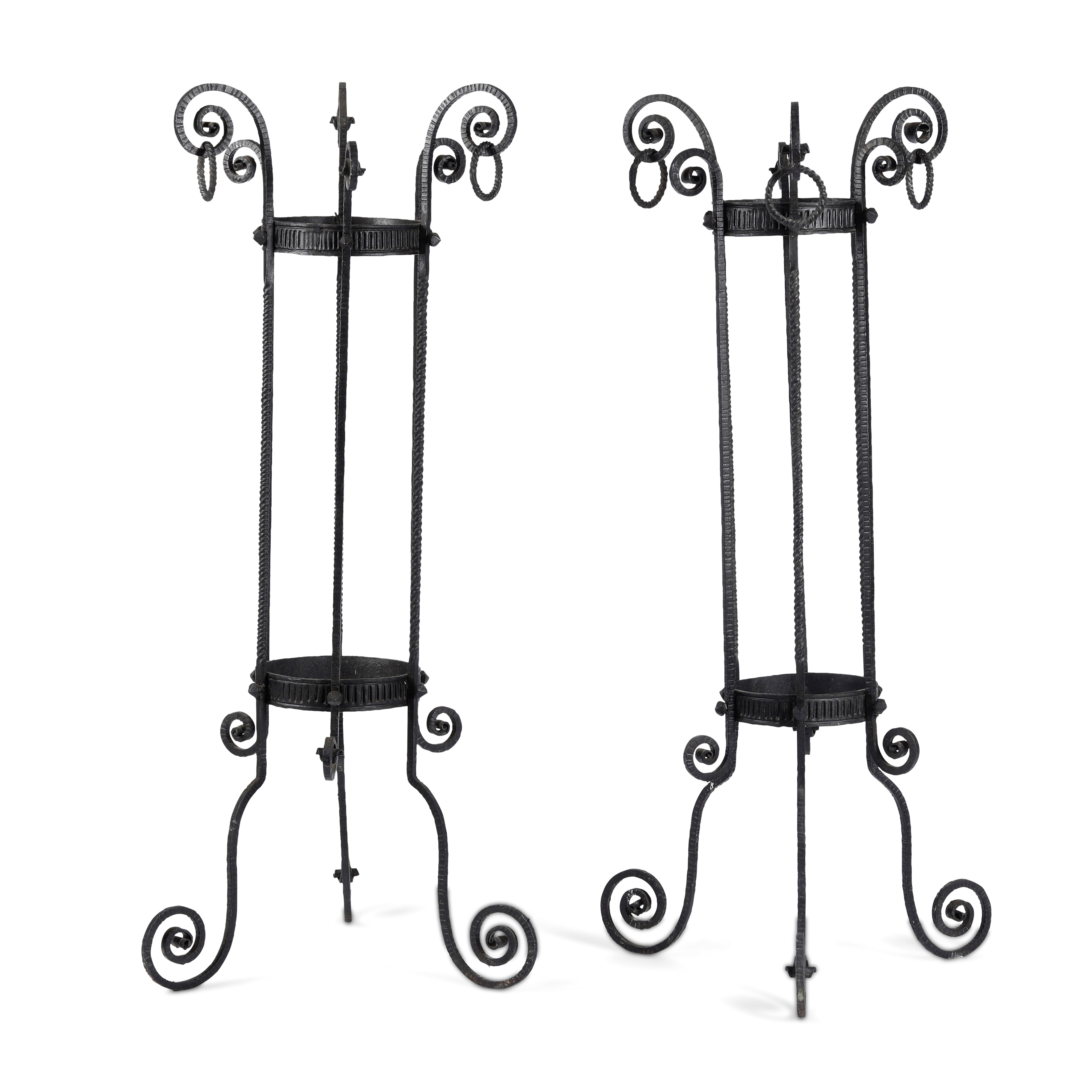 Coppia di basi portavaso in ferro lavorato. XX secolo