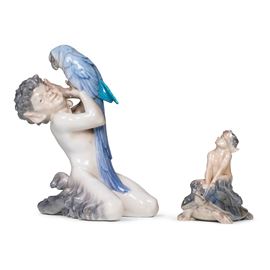 La figurina di satiro con pappagallo è da datare 1945 mentre l'altra è del 1962
