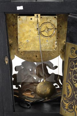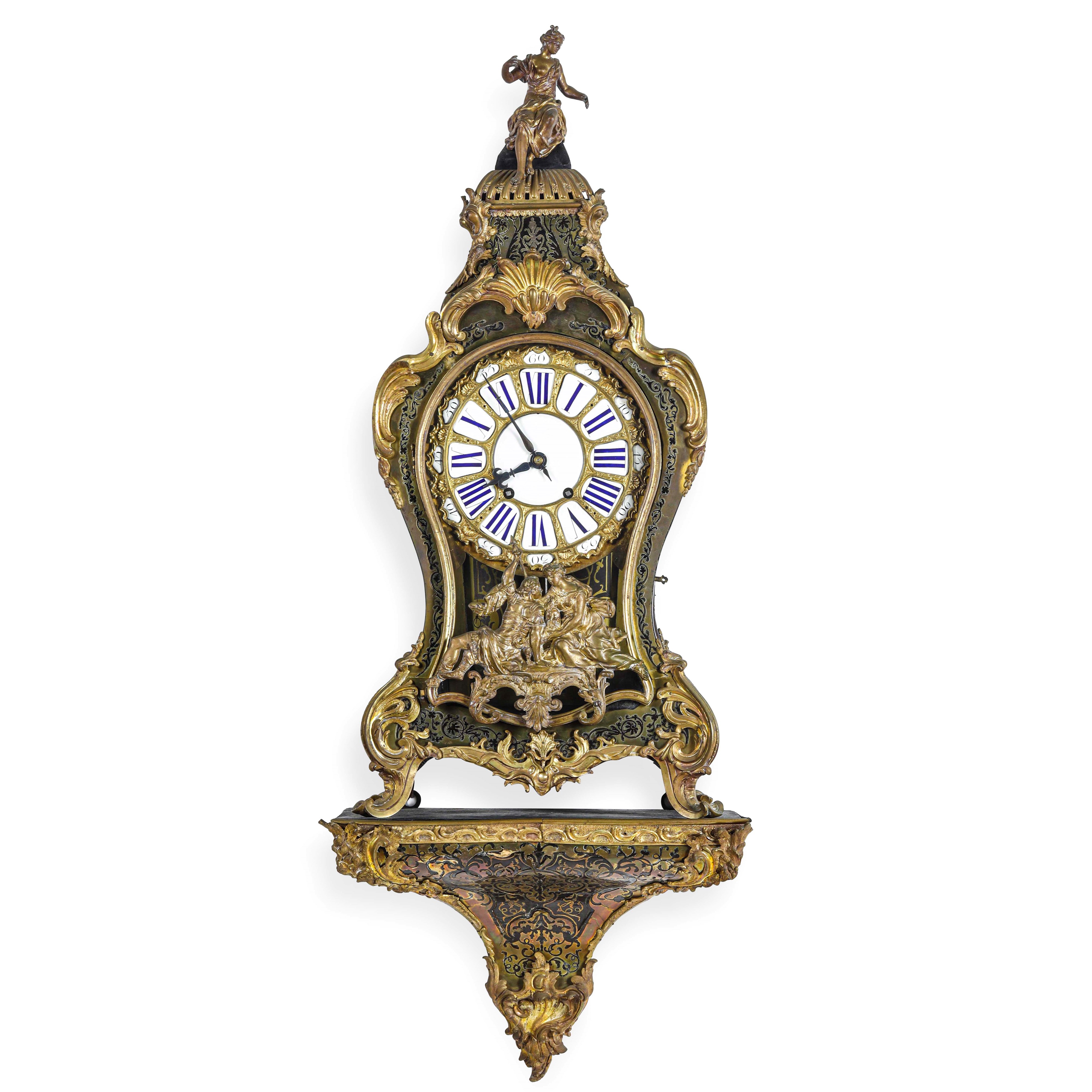 Pendola Cartel con mensola intarsiata in ottone in stile Boulle. Francia, XIX secolo