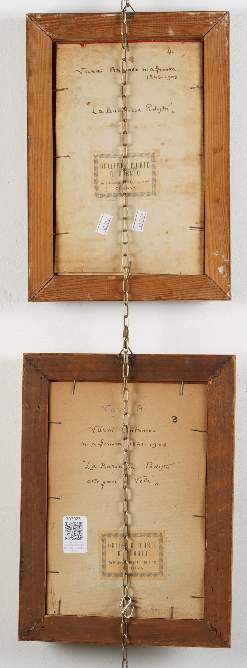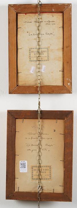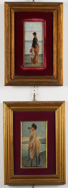 due dipinti ad olio su tela, cm 16x9 e cm 16x7