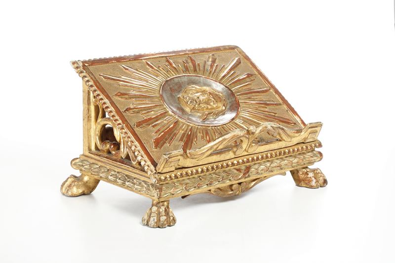 Leggio in legno intagliato e dorato. XIX secolo