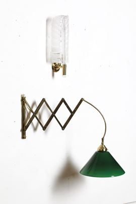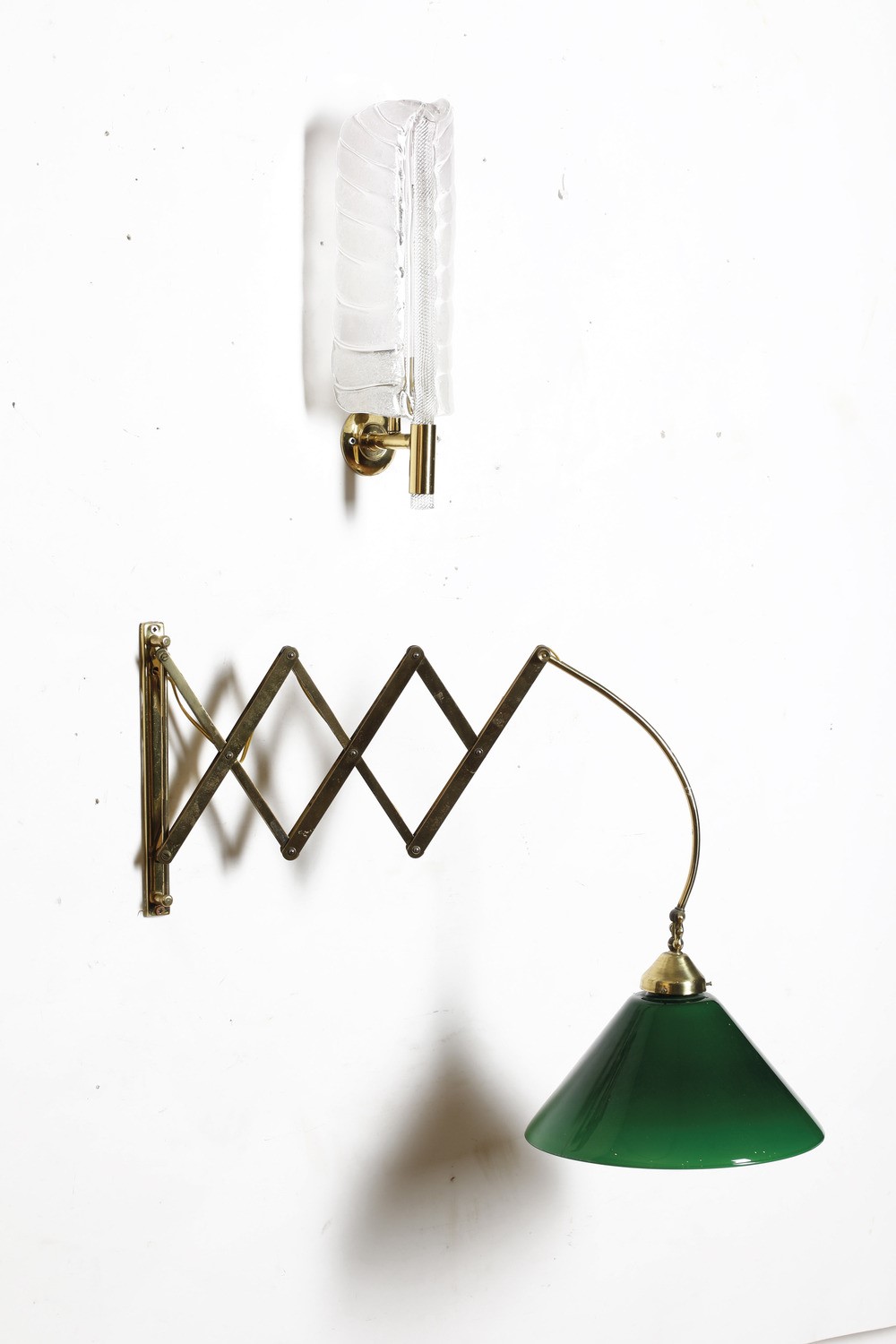 Lotto composto da lampada a sospensione, applique a foglia di Murano e lampada a braccio estensibile