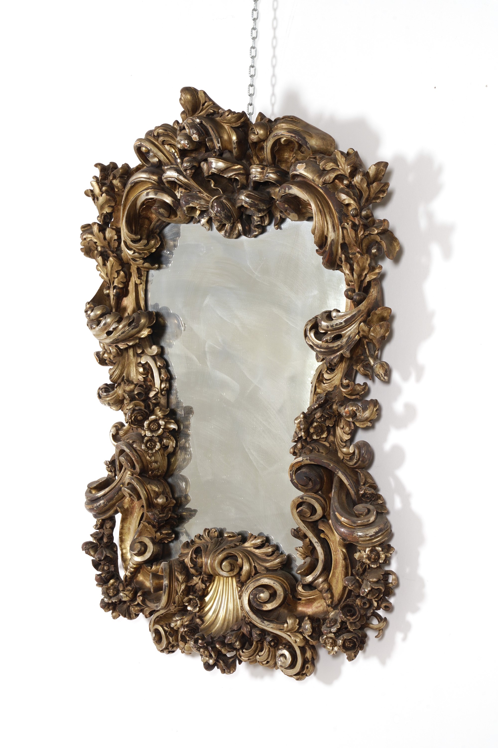 Specchiera in legno dorato e riccamente intagliato. XX secolo