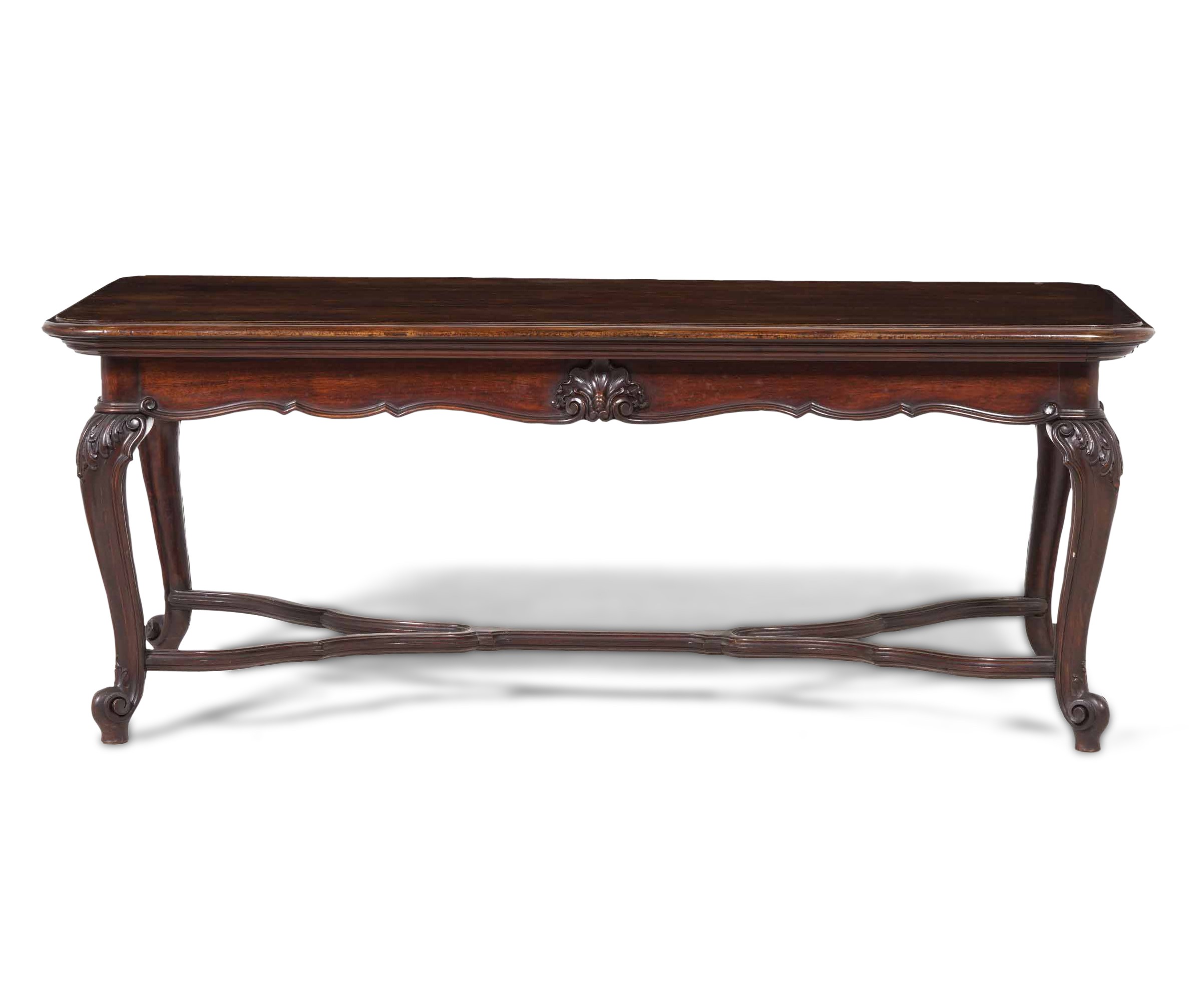 Tavolo basso da salotto con fascia e gambe intagliate. XIX secolo