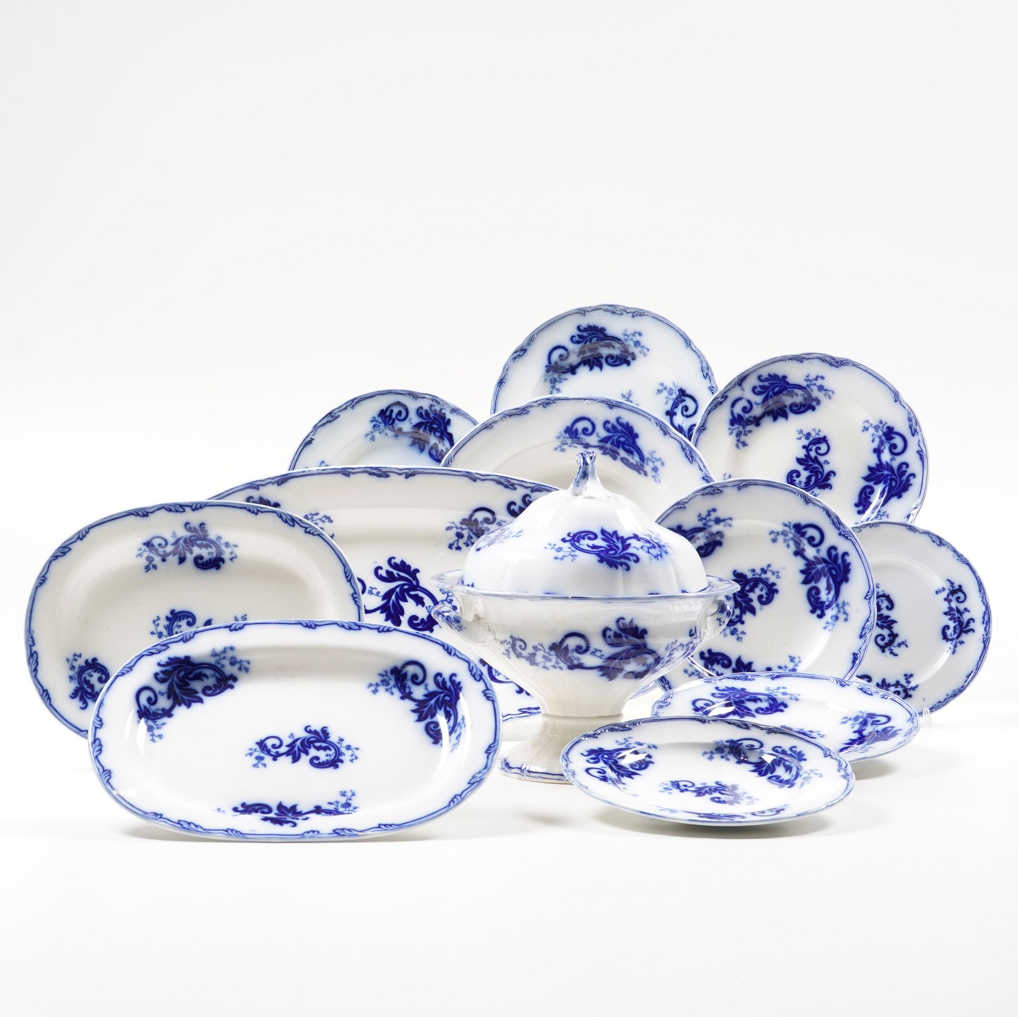 Il servizio conta 88 pezzi ed è così composto: 20 piatti fondi; 43 piatti piani; 11 da antipasto; 1 piatto da dessert; 1 zuppiera; 1 pesciera; 2 piatti da portata ovali; 4 piatti da portata tondi; 2 piatti tondi con manici; 3 vassoietti ovali