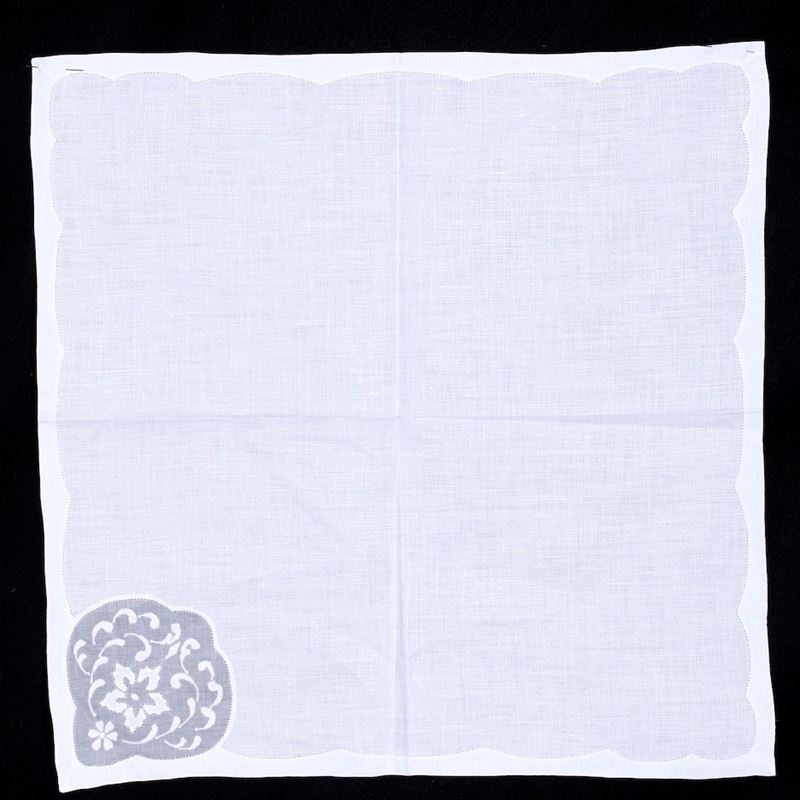 In lino ricamato. Dimensioni: tovaglia cm 270x175; tovaglioli cm 43x43. Conservazione: ottima