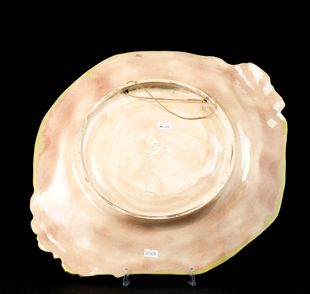 An earthenware ceramic vase with a polychrome decor of a female profile and flowers. Engraved signature. Minor chipping
