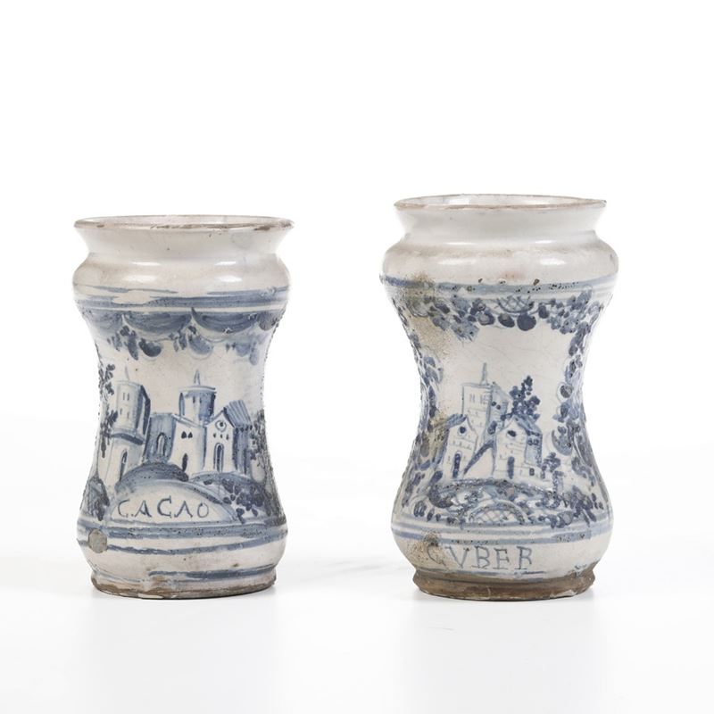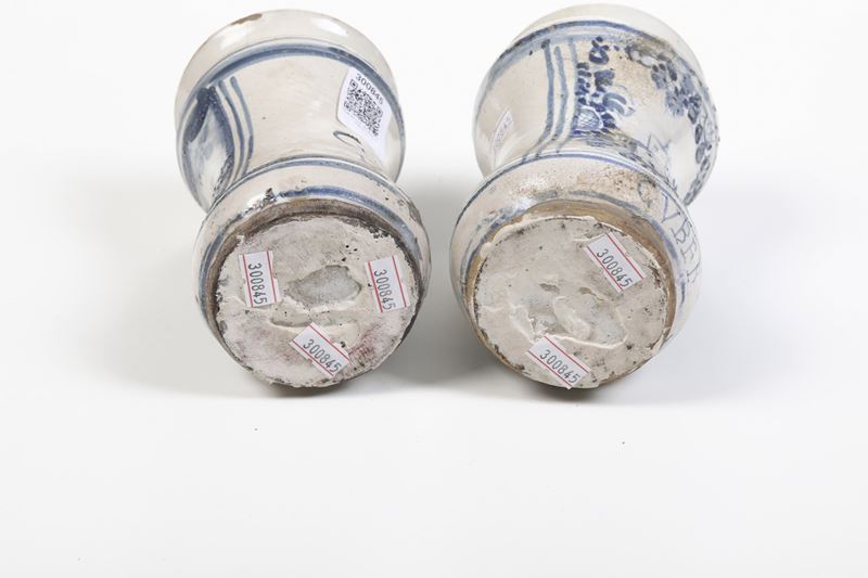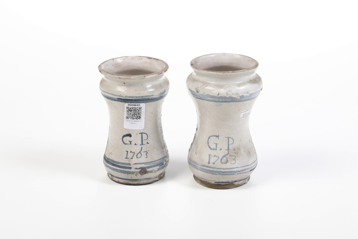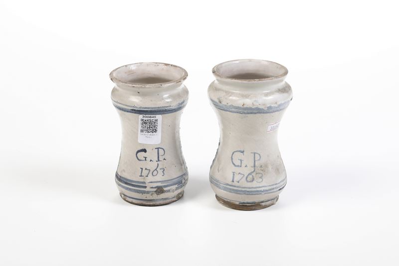Coppia di albarelli datati 1763. Napoli, probabilmente XIX secolo.