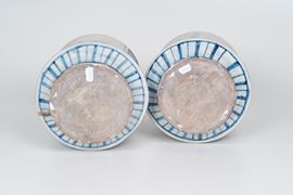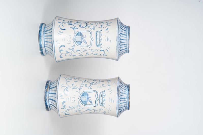 Coppia di grandi albarelli datati 1751.
